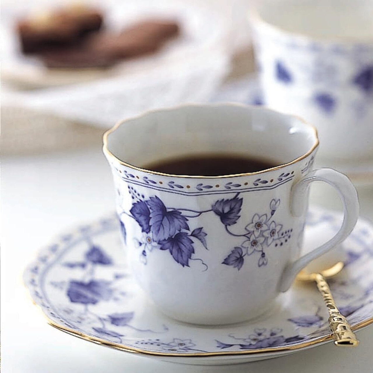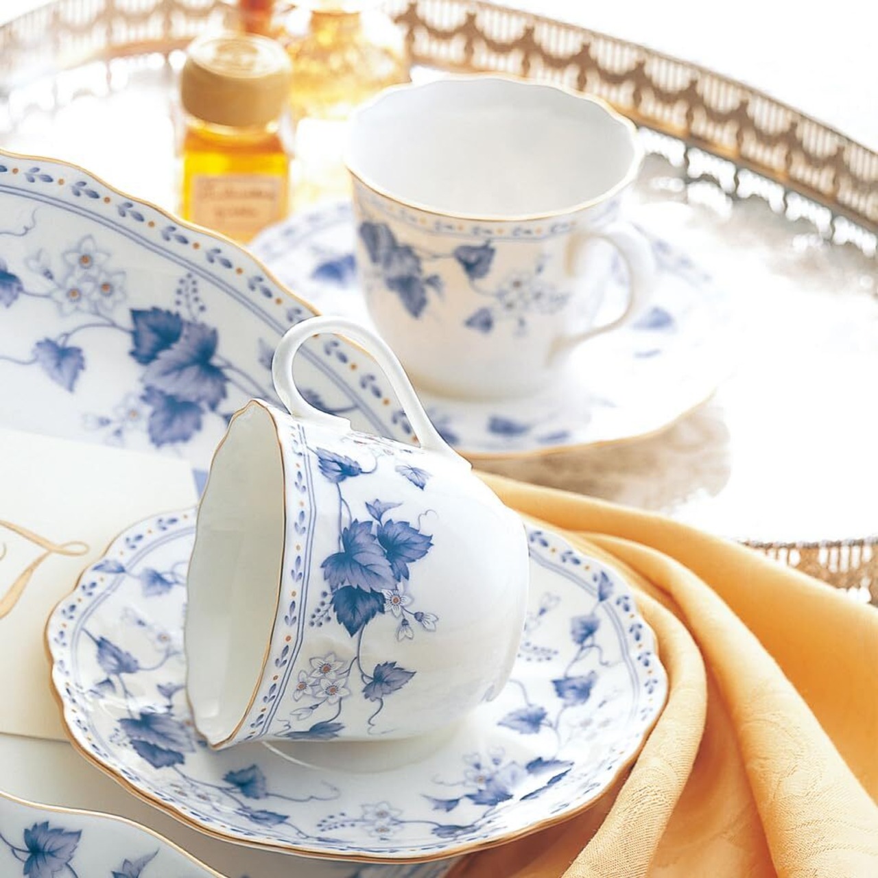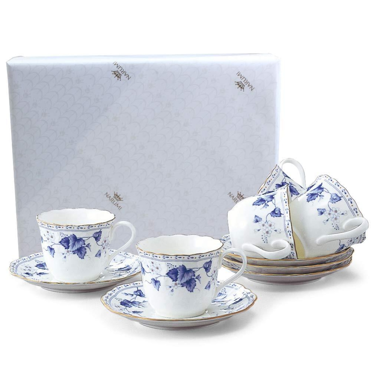 NARUMI(ナルミ) カップ ソーサー セット ソラリア 200cc ブルー 蔦柄 5客セット かわいい おしゃれ 上品で美しい絵柄 結婚祝い プレゼント ギフト箱入り ラッピング済 8128-21286PAZ
