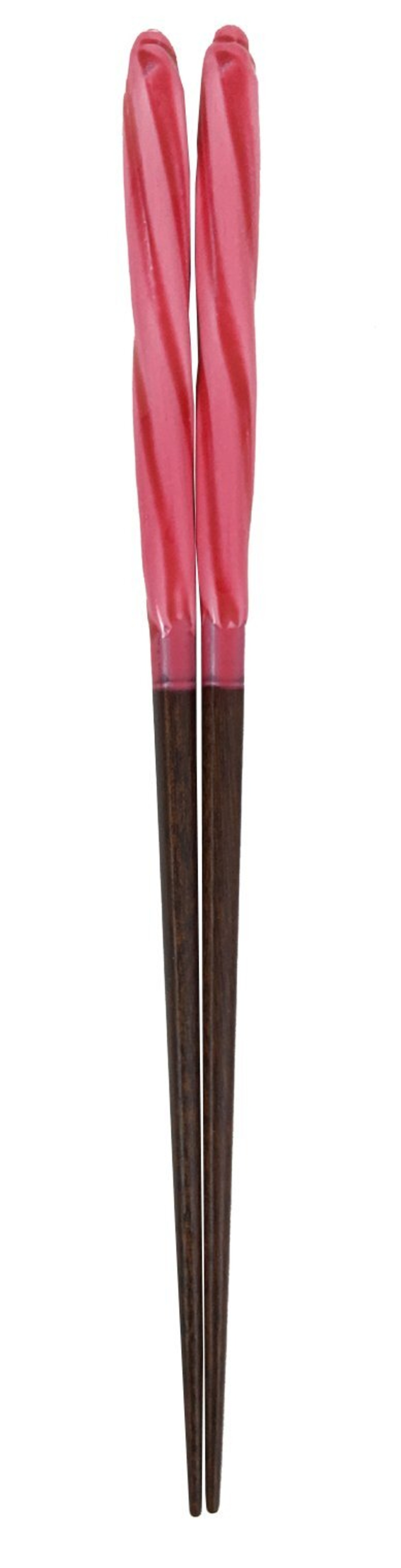 アオバ 箸 天然木 あめ玉ネジリ 赤 23cm