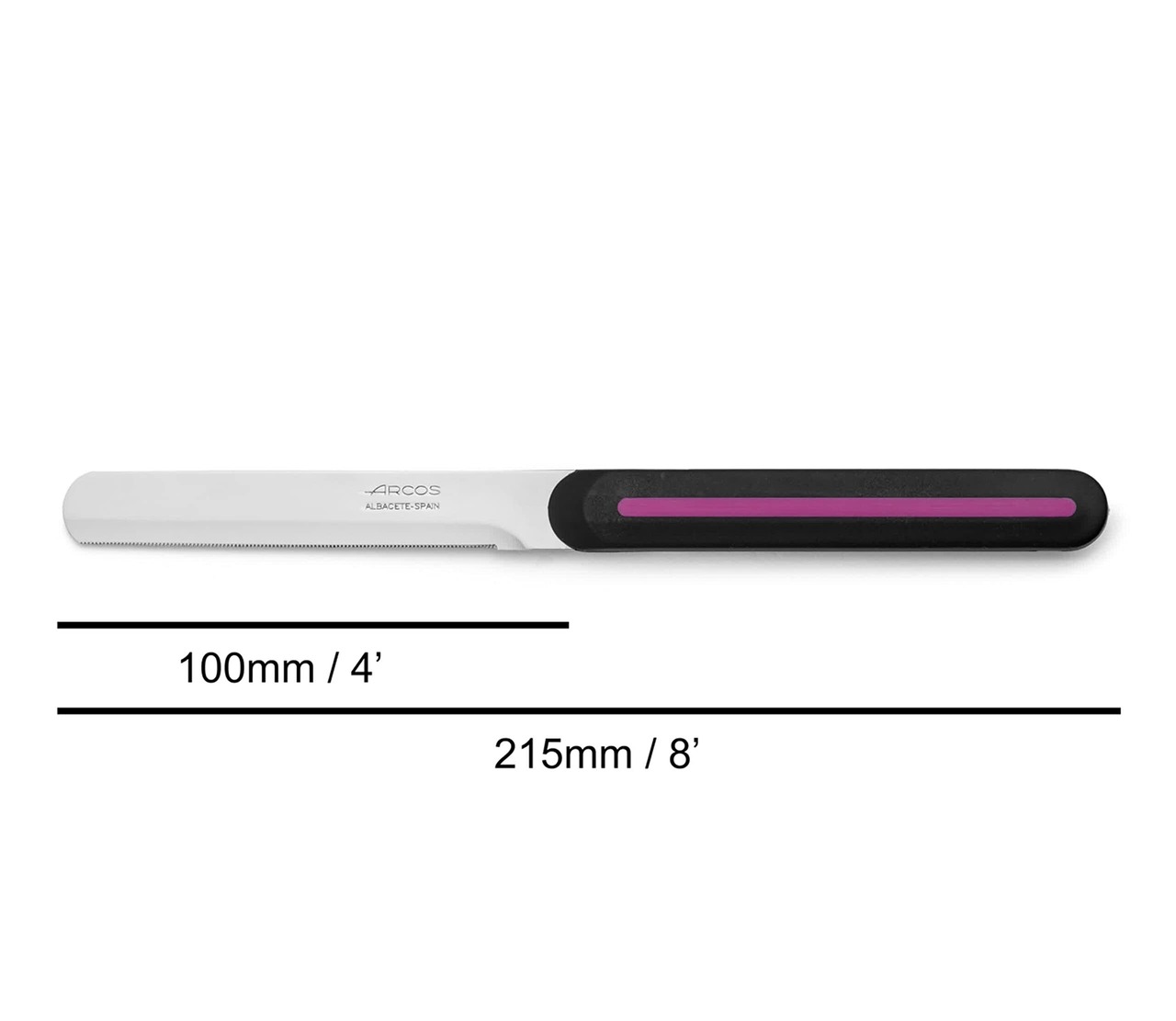 ARCOS アルコス テーブルナイフ ギザ刃 スペイン製 食洗機対応 ニトラムステンレス鋼 (刃渡り10cm, ブラック/ピンクライン, 品番373631)