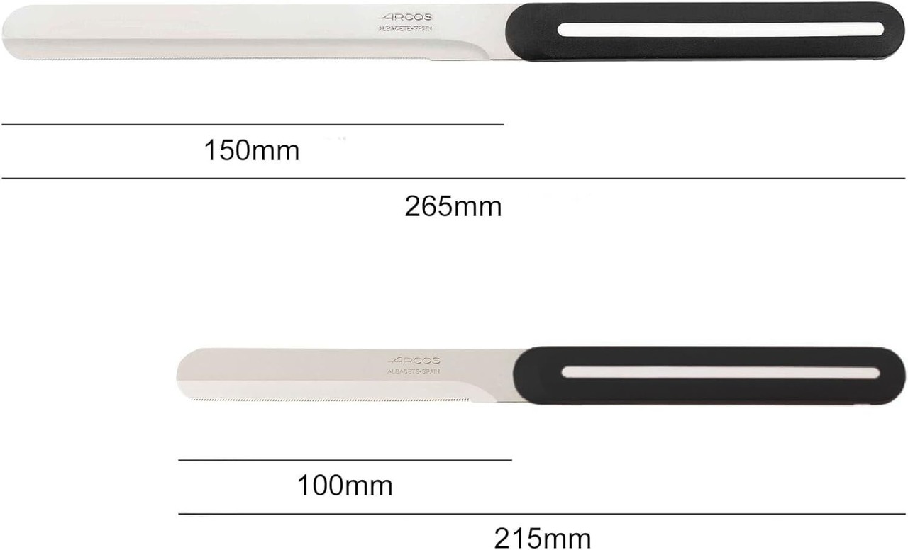 ARCOS アルコス テーブルナイフ & テーブルナイフロング 2本セット ギザ刃 スペイン製 食洗機対応 ニトラムステンレス鋼 (刃渡り10cm ブラック/ホワイトライン、15cm ブラック/ホワイトライン)