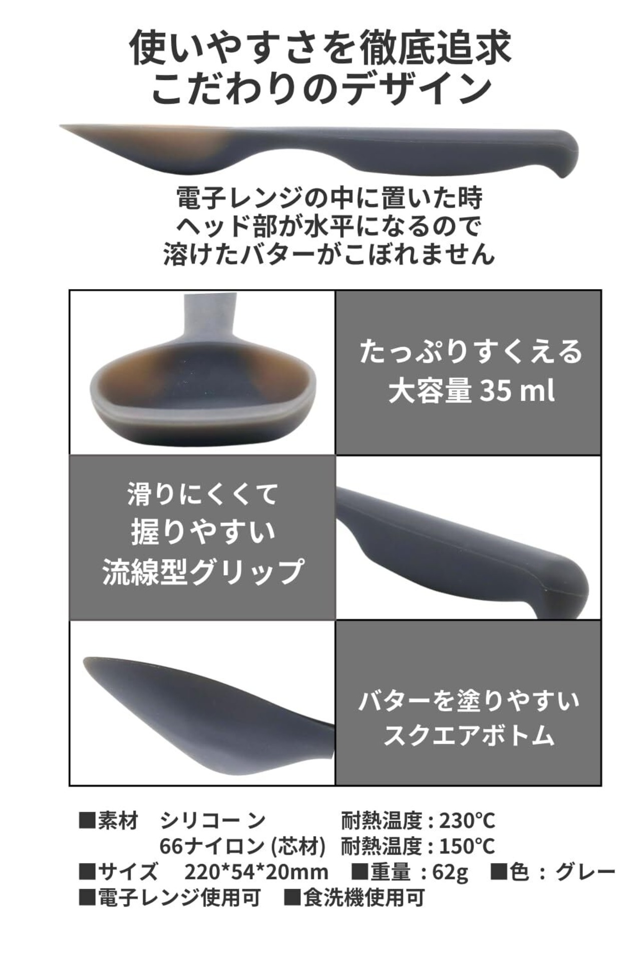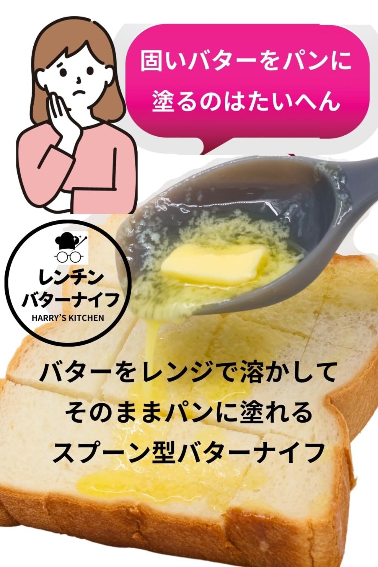 【レンチンバターナイフ】 バターをレンジで溶かしてそのままパンに塗れるスプーン型 バターナイフ クッキングスプーンとしても大活躍 耐熱シリコン製