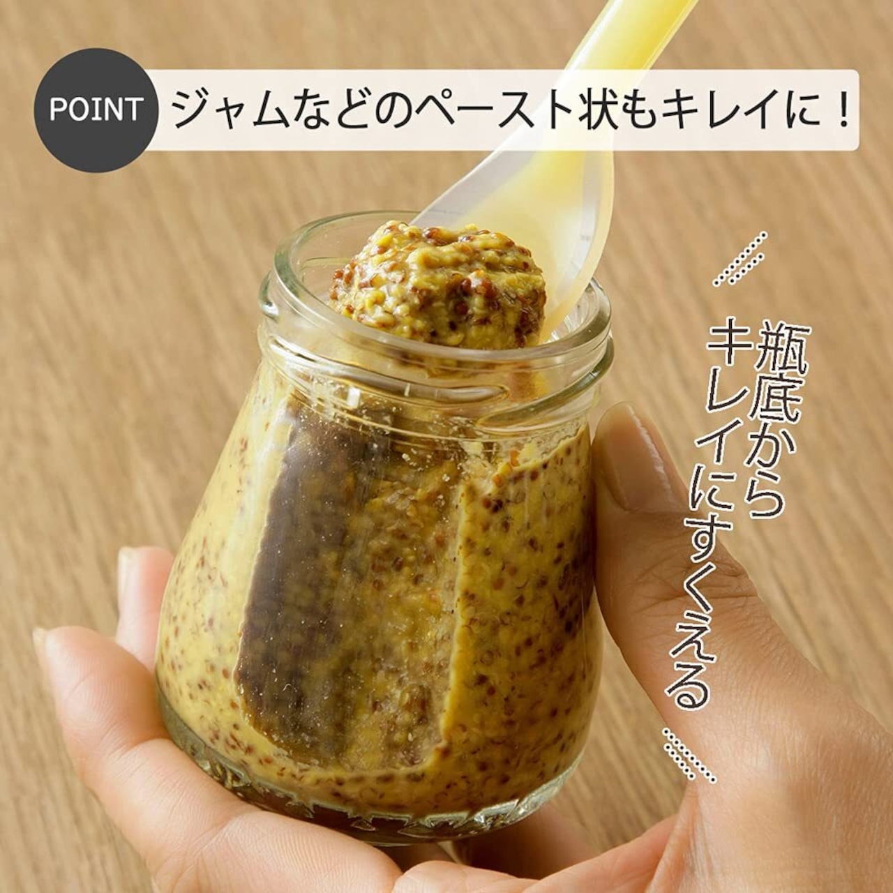 やわらか素材ですので、赤ちゃんの離乳食、ジャムやペースト状の食べ物などが最後まできれいにすくえる