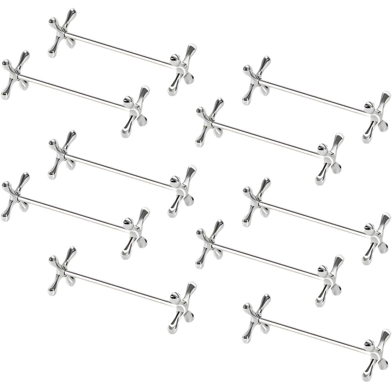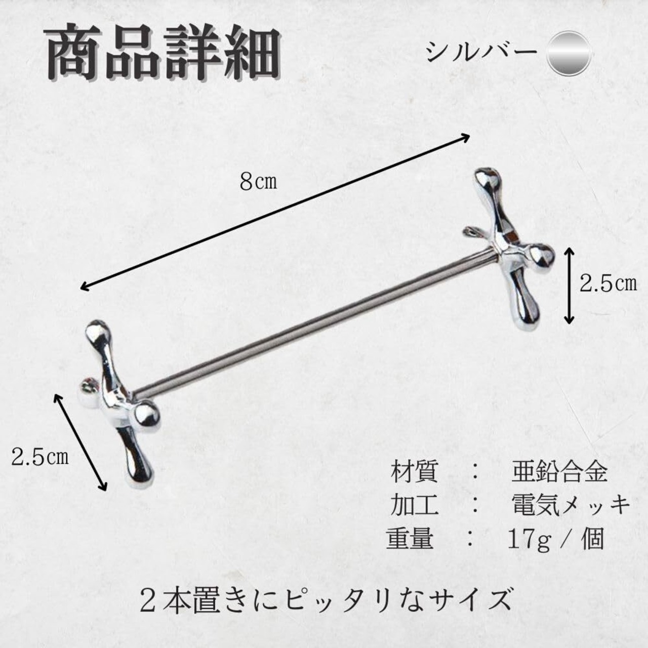 【商品仕様】 セット内容:ナイフレスト 2個 / 4個 / 10個セット サイズ:幅8cm × 奥行2.5cm × 高さ2.5cm 素材:亜鉛合金製(メッキ加工) カラー:シルバー(光沢仕上げ) お手入れ:手洗い推奨