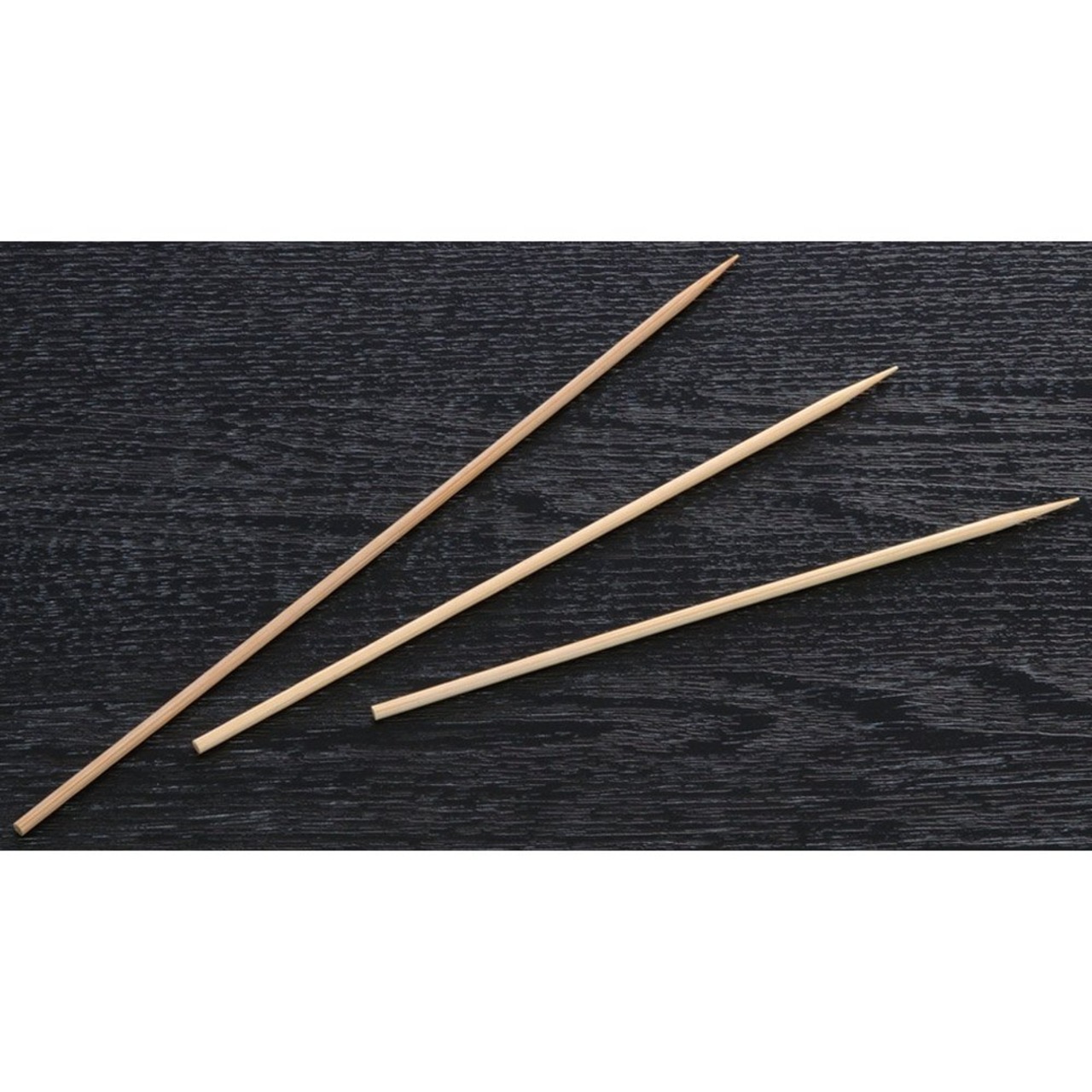 <注意事項>●竹串を使う際は、以下の点に注意しましょう。食材に竹串を通す前に、竹串の先端が尖っていないか確認する。 竹串を食材に通しすぎると、竹串が飛び出したり、食材が破損したりする恐れがあるので注意する。 焼き鳥など、竹串に直接火が当たる料理の場合は、焦げ付きを防ぐために竹串を水に浸してから使用する。●竹串を選ぶ際は、以下の点に考慮しましょう。使用する食材: 串刺しする食材に合わせて、太さや長さを選ぶ。 料理: 焼き鳥など火にかける料理の場合は、耐熱性の高い竹串を選ぶ。 用途: 盛り付けなどに使用する場合は、見た目の良い竹串を選ぶ。●竹串の特徴は以下の通りです。竹串は、古くから日本で使用されてきた調理器具です。 竹串は、竹の抗菌作用があるため、衛生的に使用することができます。 竹串は、使い捨てだけでなく、洗って繰り返し使用することができます。 竹串は、DIYや工作にも利用することができます。●予告なく、箱・袋のパッケージデザインが変更する場合があります。