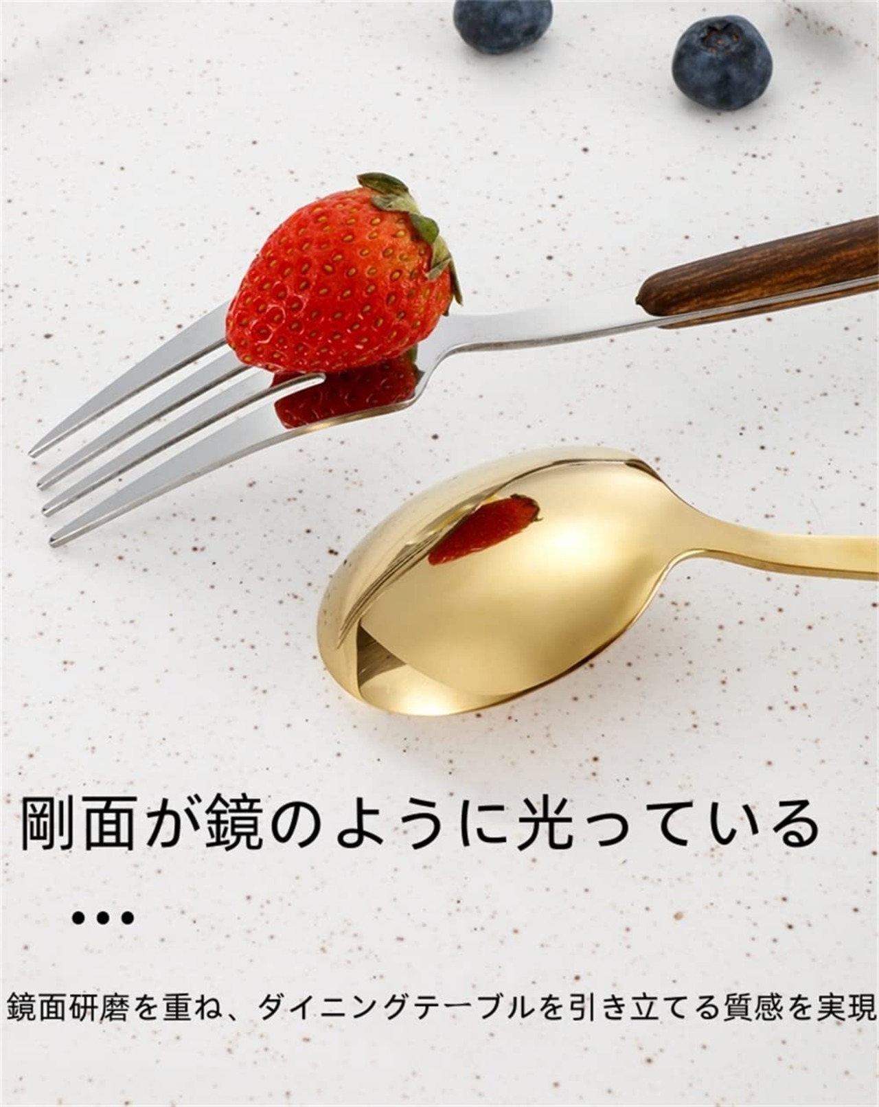 【素材】:高品質なステンレス、木を採用さており、 高い強度、錆びにくい、変色しにくい、高い耐熱性があるなどの特徴があるため、長くご使用できる。衛生、丈夫なステンレスカトラリーです。
