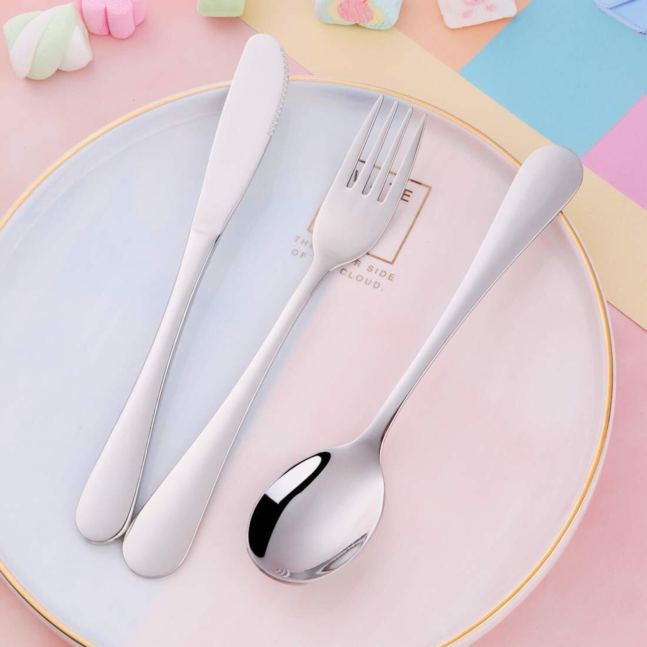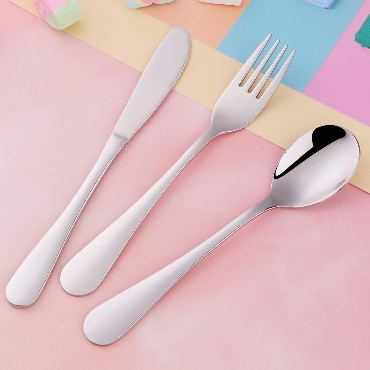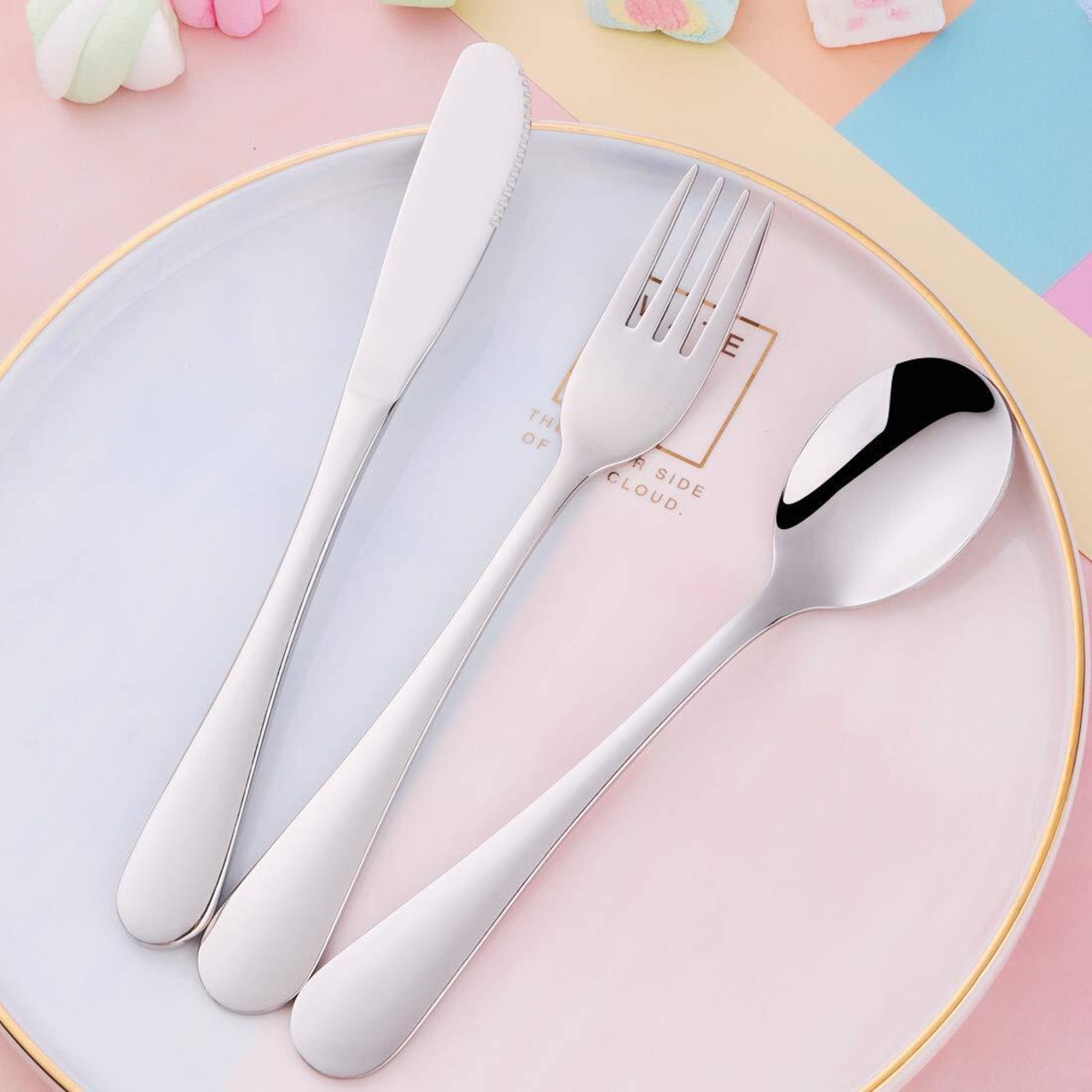 【子供に最適な食器】:小さなお子さまの手にもなじみやすいために 丸みを帯びてちょうどいいサイズハンドルとシンプルなデザインを採用する。これは 初めて カトラリーを使う子供にとって 最適な選択です。同時に 可愛い外観と様々な色か 子供に 愛用される。