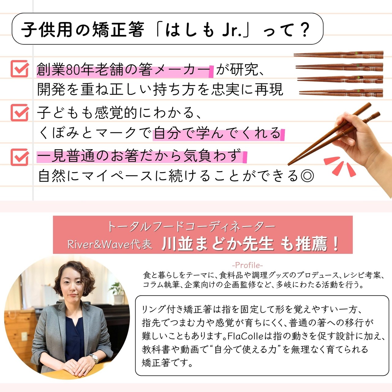 【数量限定】FlaColle はしもjr. 【子どものために考えられた 本気のトレーニング箸】 子供用 矯正箸【感覚でわかる自然と身に付く】 トレーニング箸 練習箸 箸 子供 こども しつけ箸 躾箸 箸使い 【7~9歳 身長120~130cm】 (右利き用 18cm)