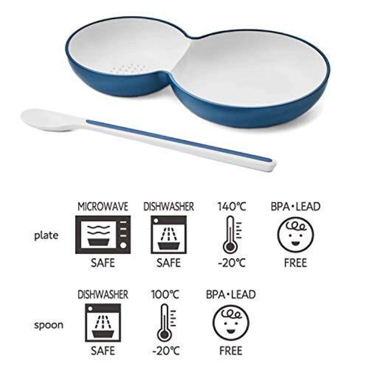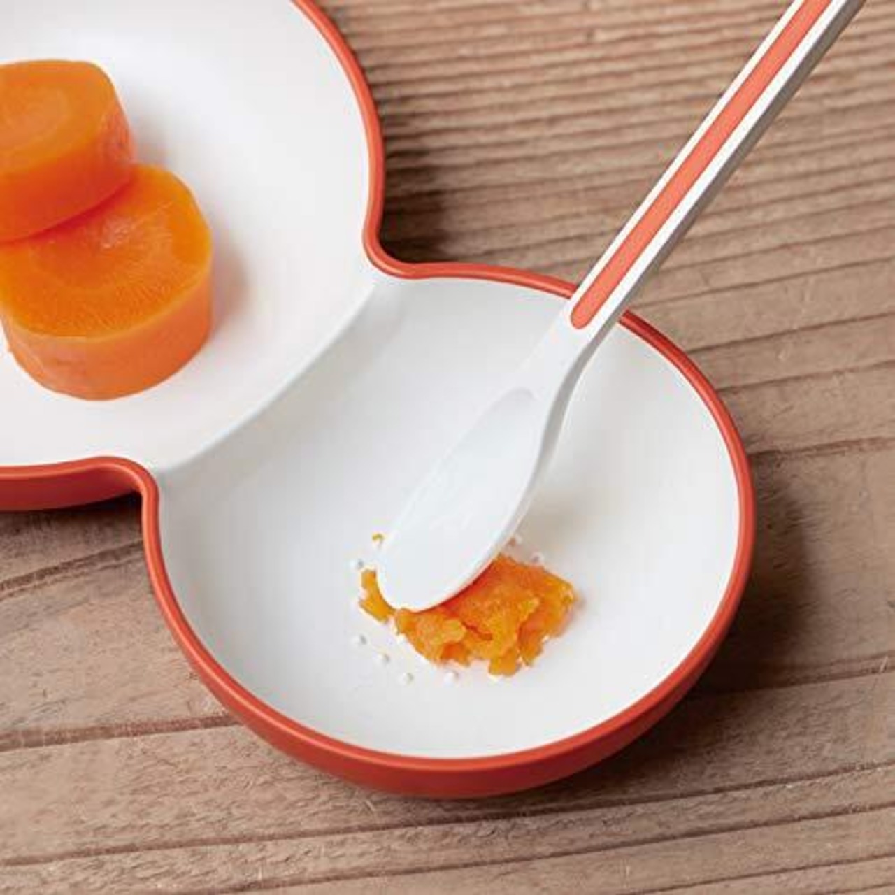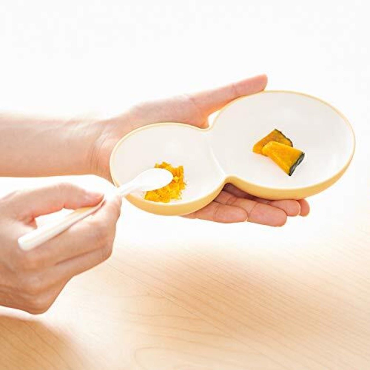 特別なフードウェアで はじめての食事をもっと楽しく おとなもこどもも初めての離乳食はわからないことだらけ。 片手でも持ちやすく、ステップに合わせて食材を潰せる凸凹が ついたプレートと、食べさせやすいように柄を長くしたスプーンのセットです。 離乳食を卒業してからも副菜やおやつをのせたり、長く使えます。贈り物にうれしい紙箱入り。