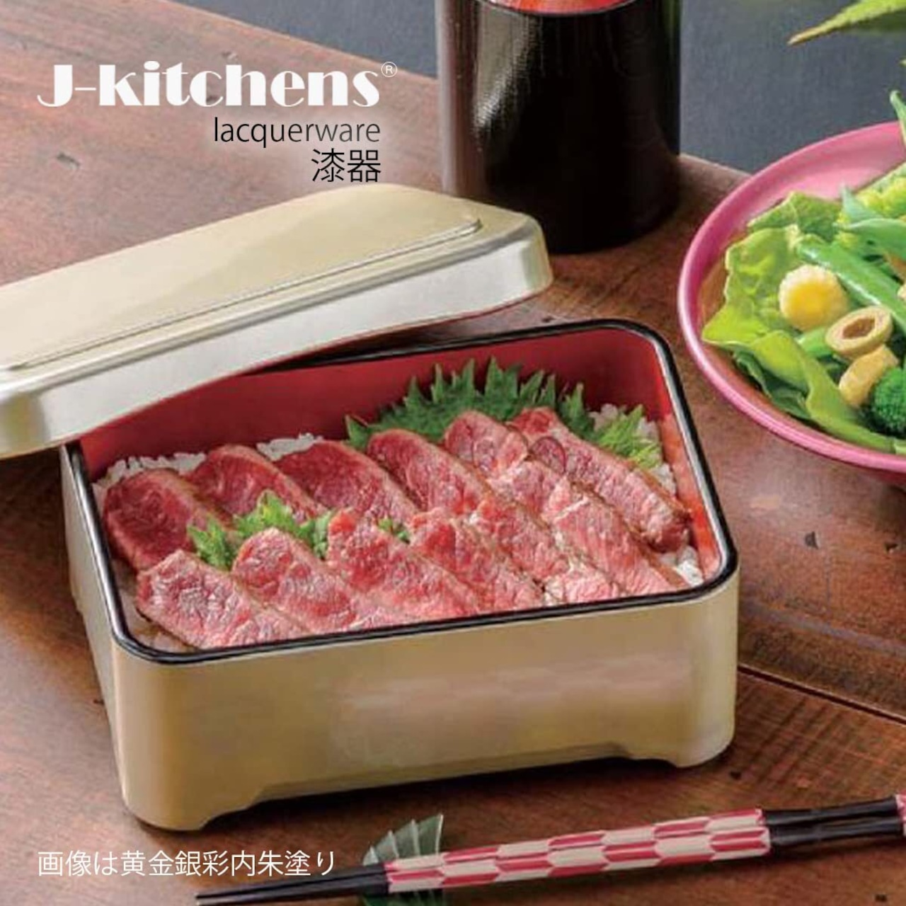 【特価商品】J-kitchens 土用の丑の日 鰻重箱 うな重 重箱 隅丸大丼重 後藤塗内朱塗 鰻 (うなぎ) 重箱 17.7cm ×13.5cm ×6.5cm 日本製 (08)