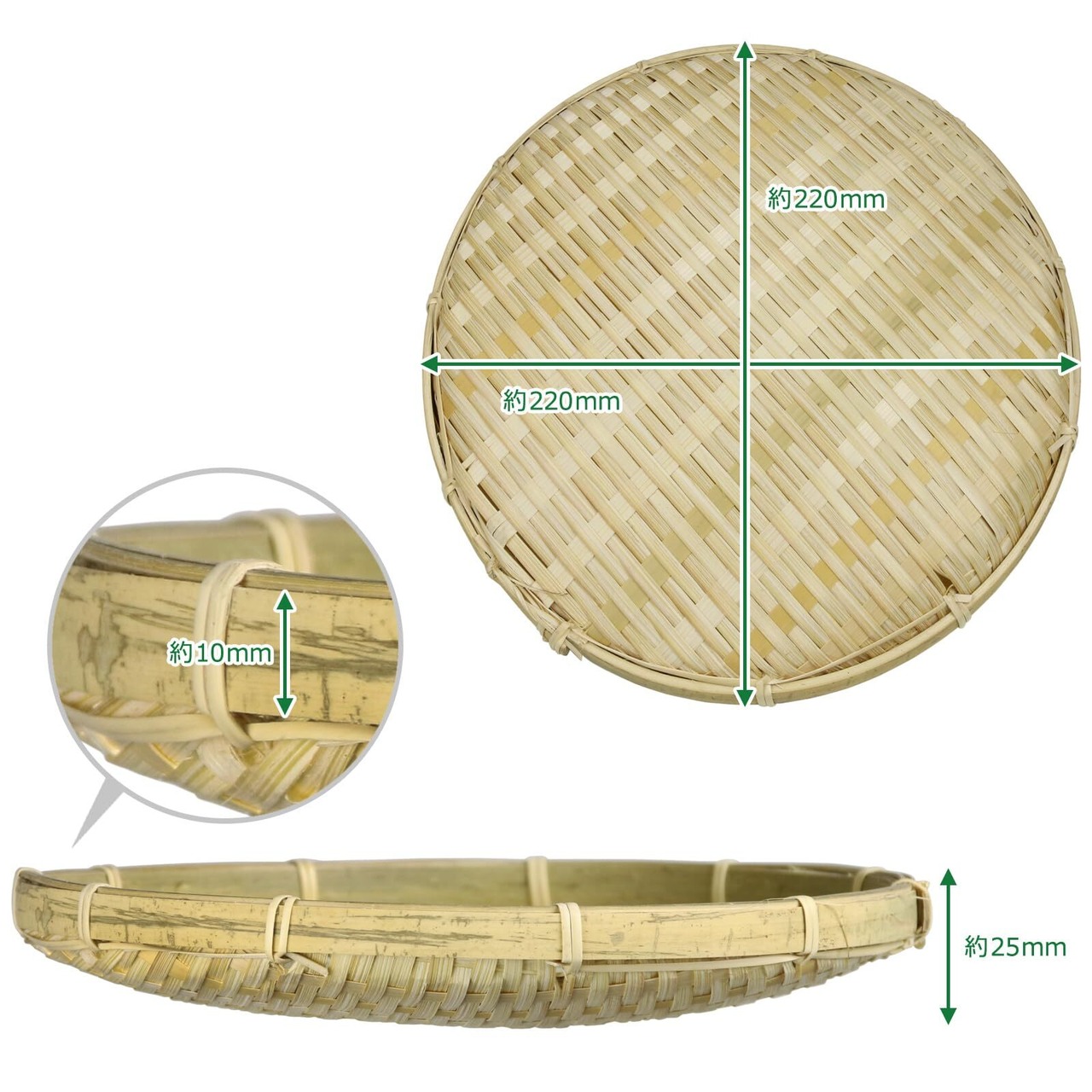 Morikuru(モリクル) 蕎麦ざる すのこ付 竹 丸 蕎麦ざるセット 皿 すのこ セット SG Wonder zone TK08-35 22cm