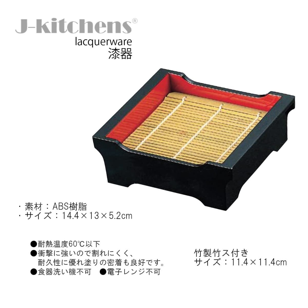 J-kitchens そば 器 ざるそば 貴舟ミニセイロ(底板付き)黒内朱 割れにくい 樹脂製 14.4×13×5.2cm 日本製