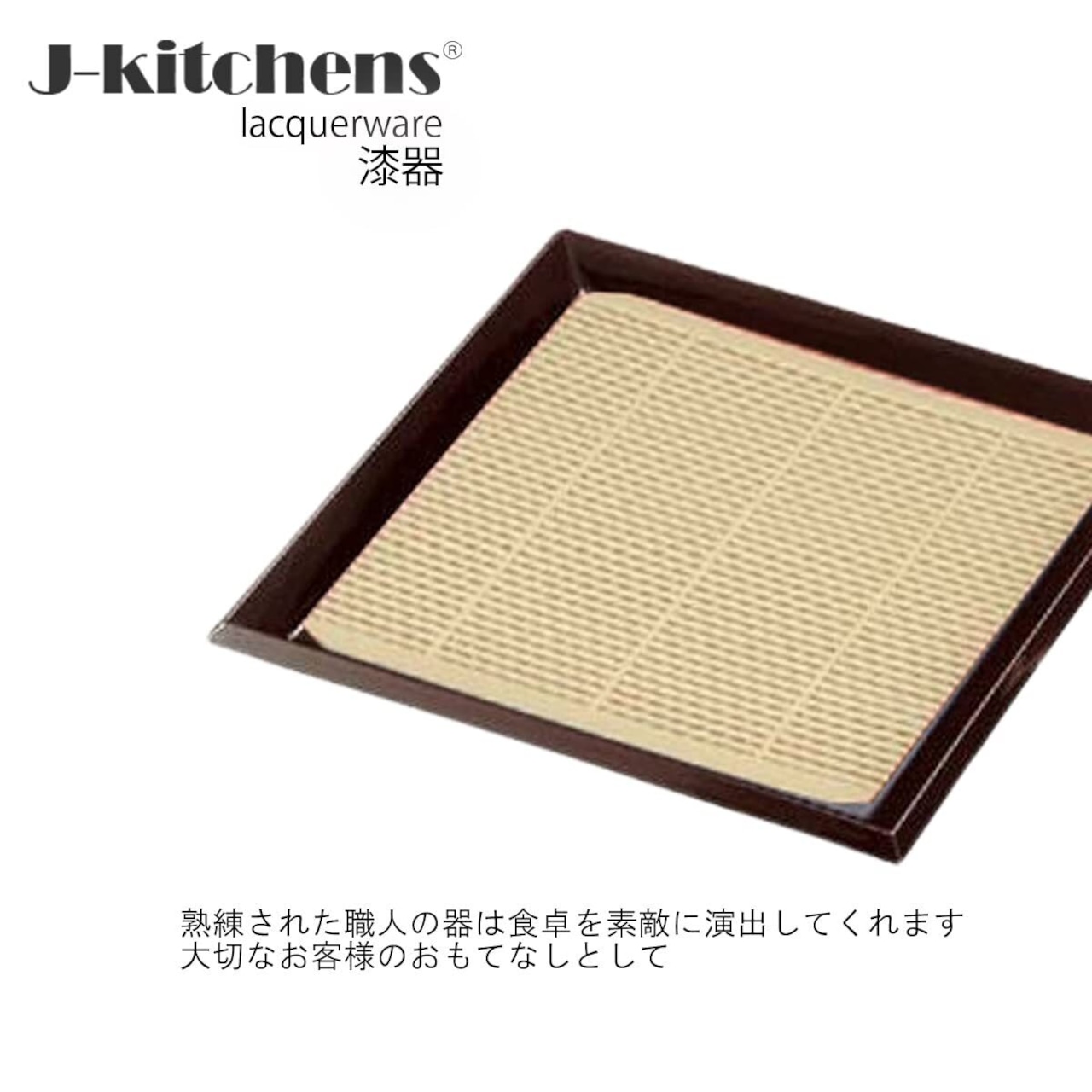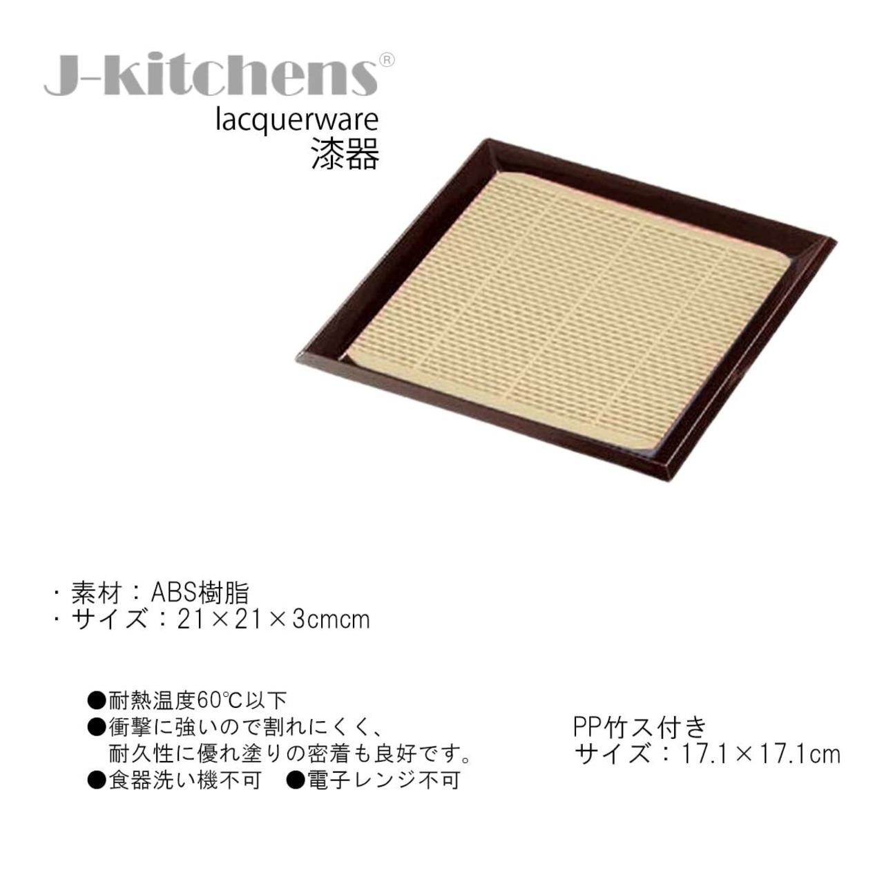 【在庫処分】J-kitchens そば 器 ざるそば 7寸角布目 そば皿 溜 割れにくい 樹脂製 21×21×3cm 日本製