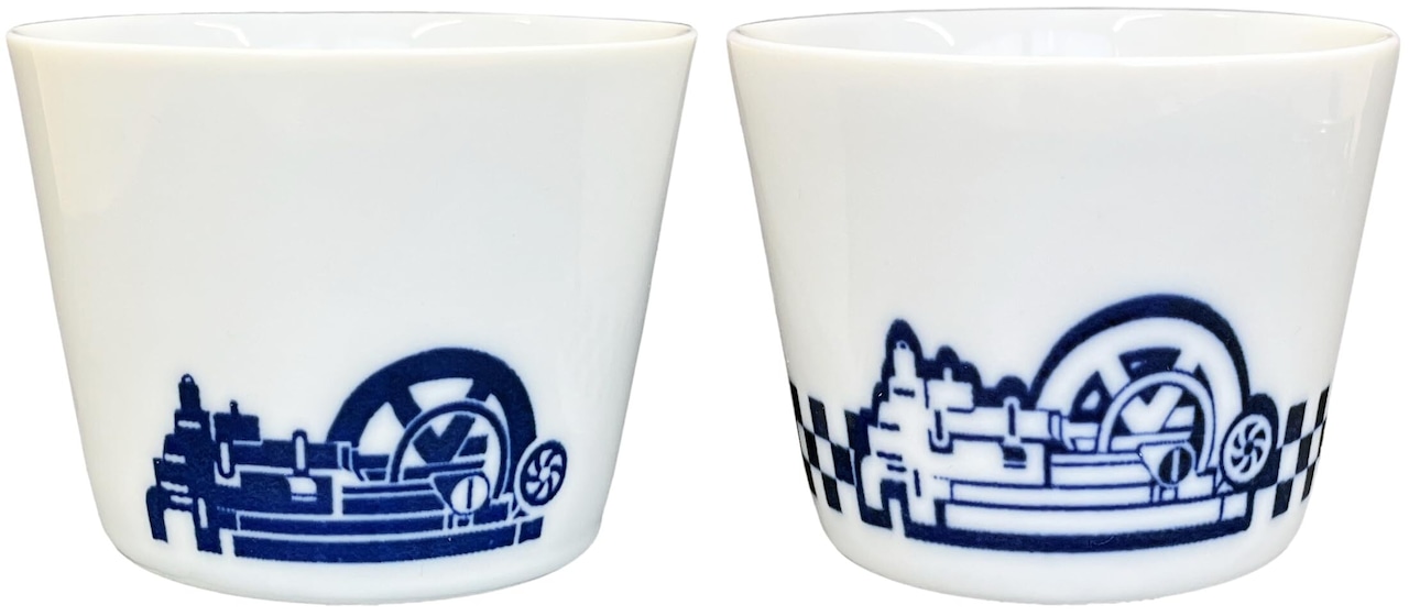 ヤンマーの原点、発動機をモチーフにしたそば猪口の2個セットです。湯呑や小鉢、デザートカップなどにもおすすめです。