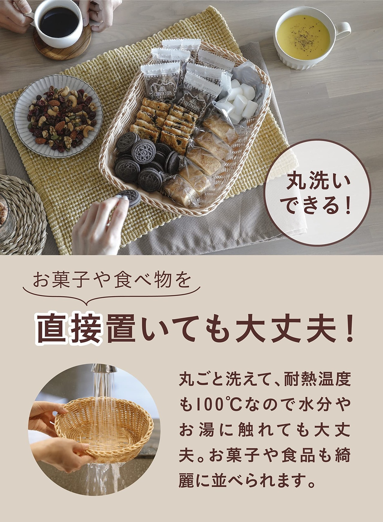 ちょっとしたコーヒーブレイクもバスケットにお菓子を盛り付けるだけで、もっと素敵な時間に。直接お菓子を並べても丸洗いが出来るので清潔に保てます。