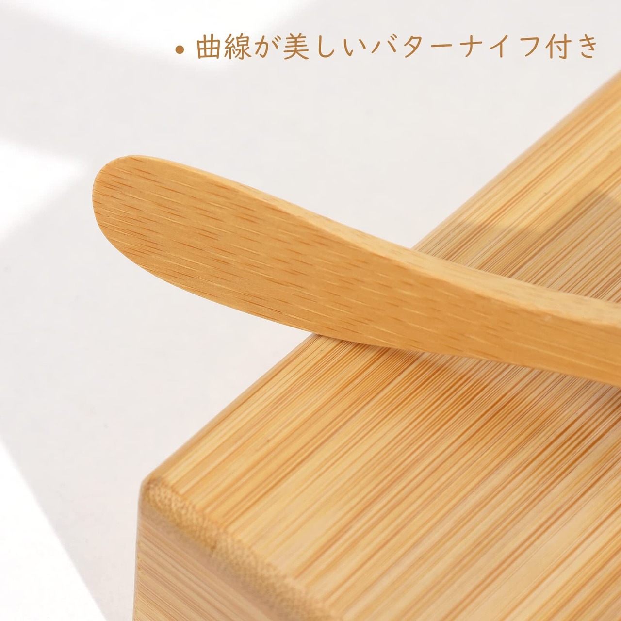 ❹ 【エコ素材】:竹は環境にやさしいエコ素材。蓋で密閉できるので、バターが酸化せず劣化の心配はありません。