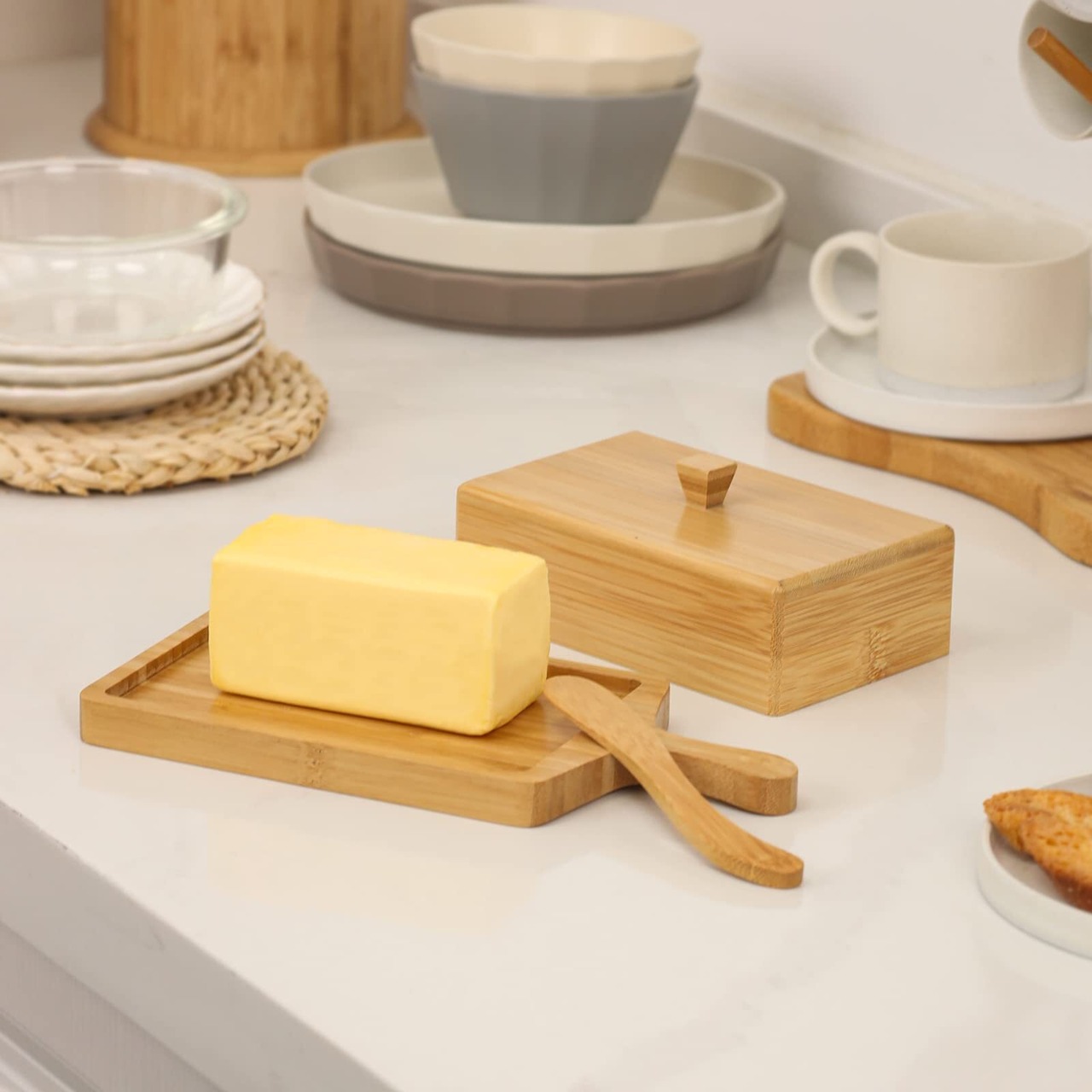 HTB バターケース 天然竹製 エコ素材 サステナブル バターナイフ付き バター収納 バター貯蔵 バター容器 保存 食品容器 HTB-BTCS