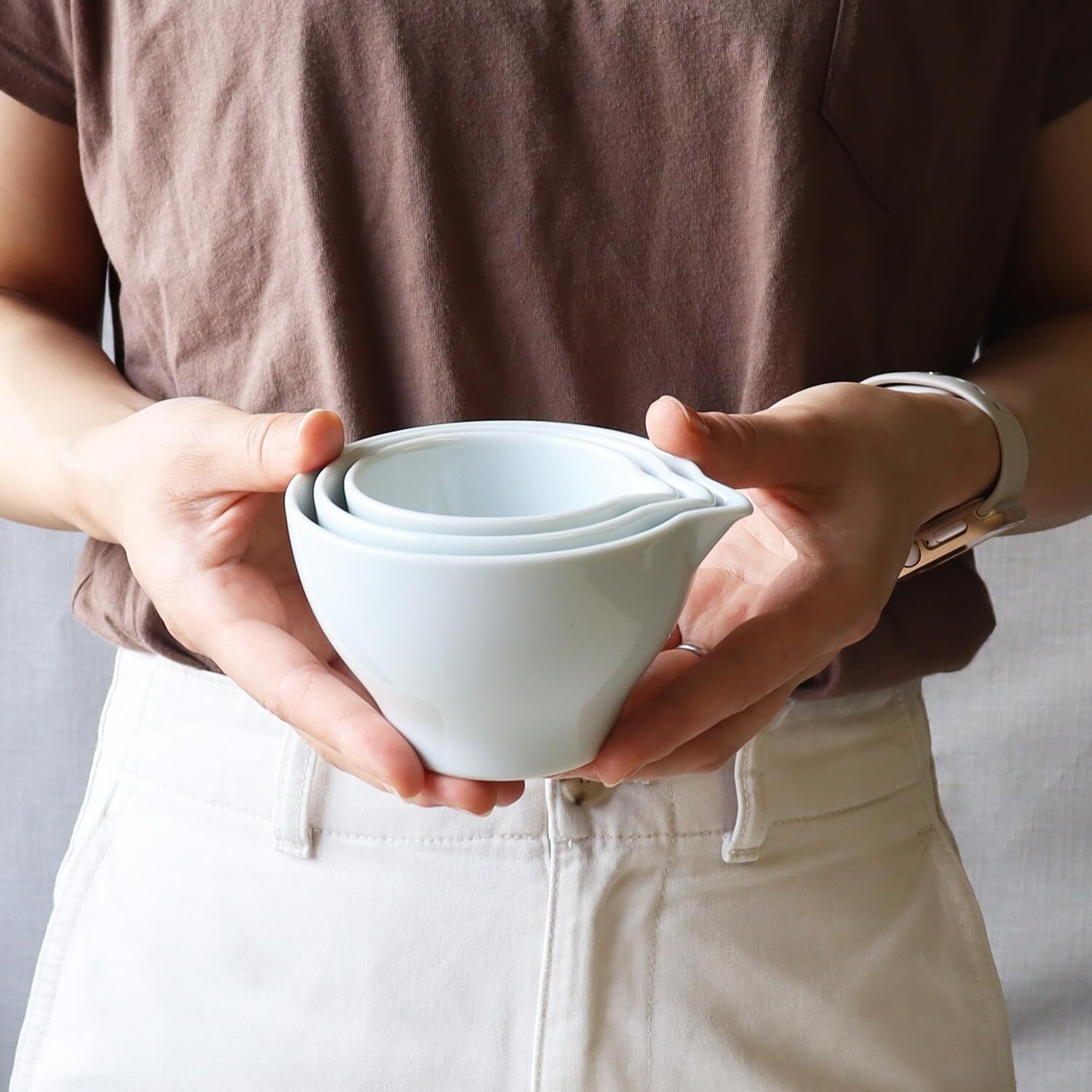 【便利な入れ子ソース入れ】3個セットしても「大」サイズにすっぽり収まる収納性。食卓にそのまま出せるのも便利です。