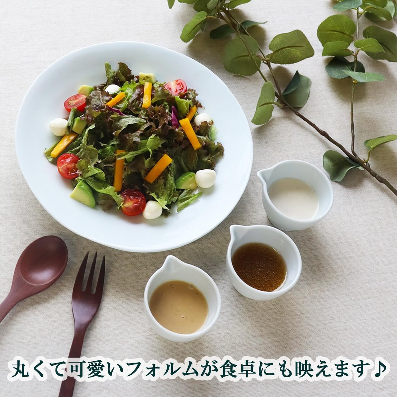 【そのまま食卓へ】シンプルでスタイリッシュな陶磁器製なので、ドレッシングやソースなどを食卓に出せるのも便利です。