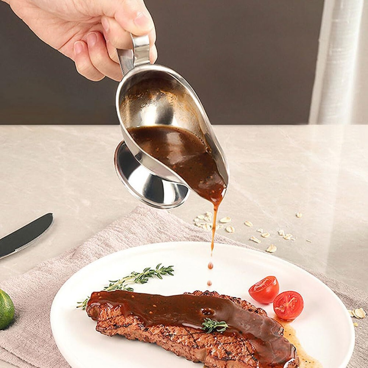 【高品質なステンレス素材】:西洋レストランのステンレスソースボートは高品質なステンレス素材を使用しており、環境に優しく健康的で、盛り付けるスープやソースが汚染されないようにします。