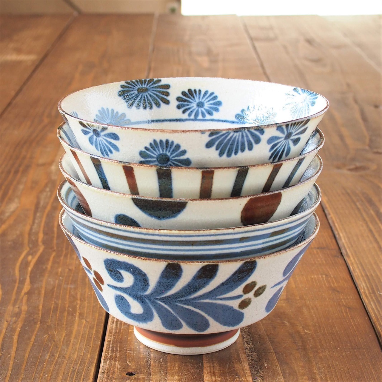 高台(丼の下の部分)は茶色のサビが巻いてあり、持ちやすく重なりもキレイです。