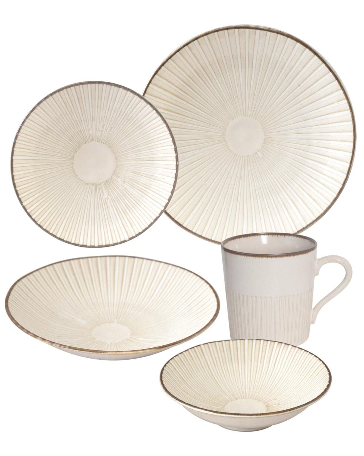 中心から放射状に広がるしのぎ模様がどんな料理でもおしゃれに演出します。焼き物特有の釉薬の窯変のムラと相まって独特の存在感を演出します。和でも洋でもオールマイティーに使えるシリーズです。 一人暮らしや新生活に便利な5点セットです。 釉薬の特性上、色ムラ、釉垂れ、色合いの個体差がございます。