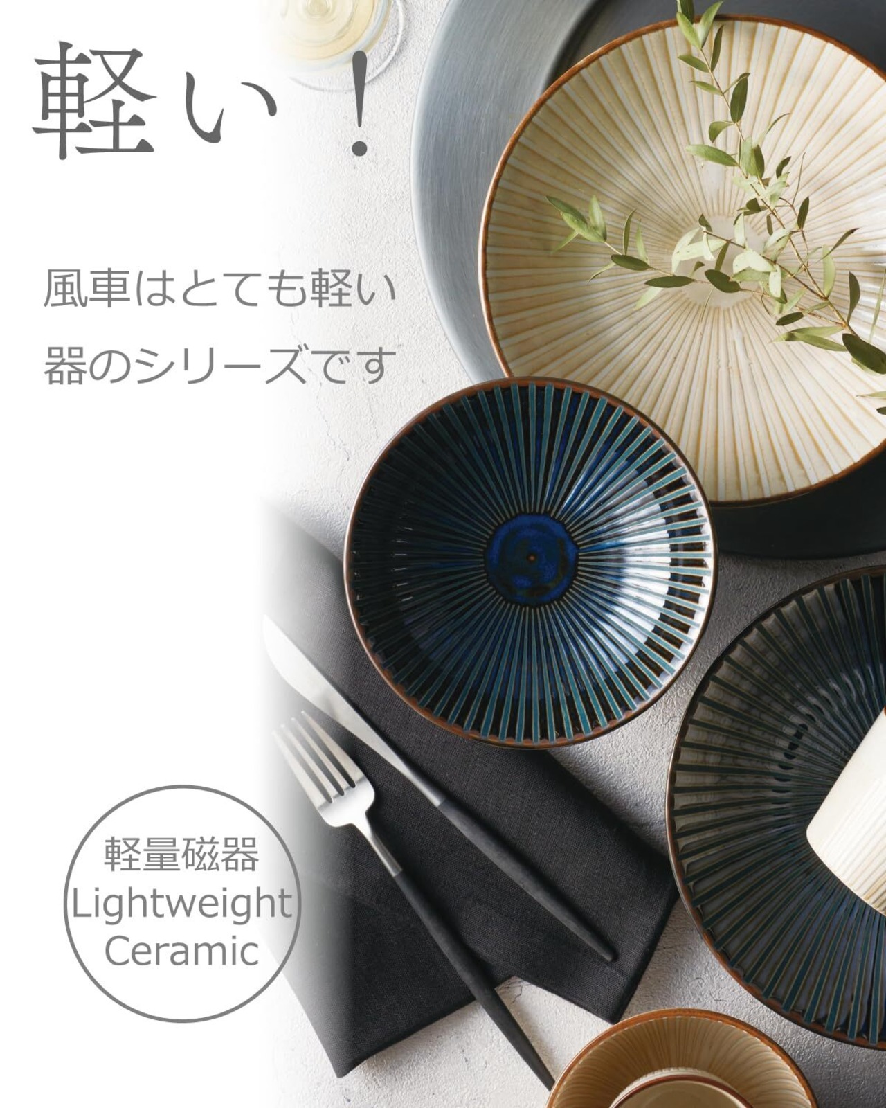 しのぎ模様が特徴の軽量磁器食器5点セット