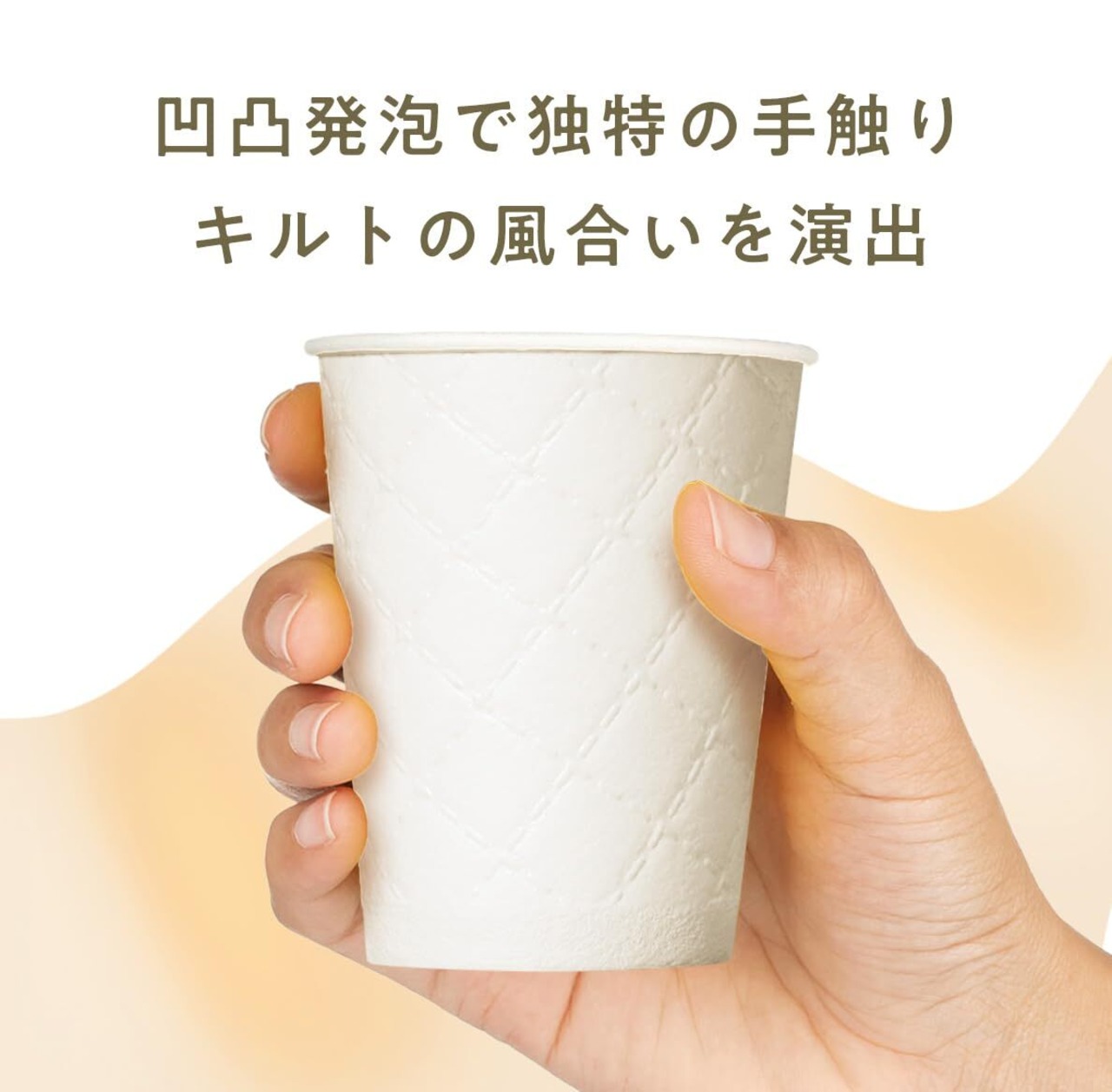 紙カップに立体的なデザインを表現。(立体的とは、凹凸加工をほどこすこと)