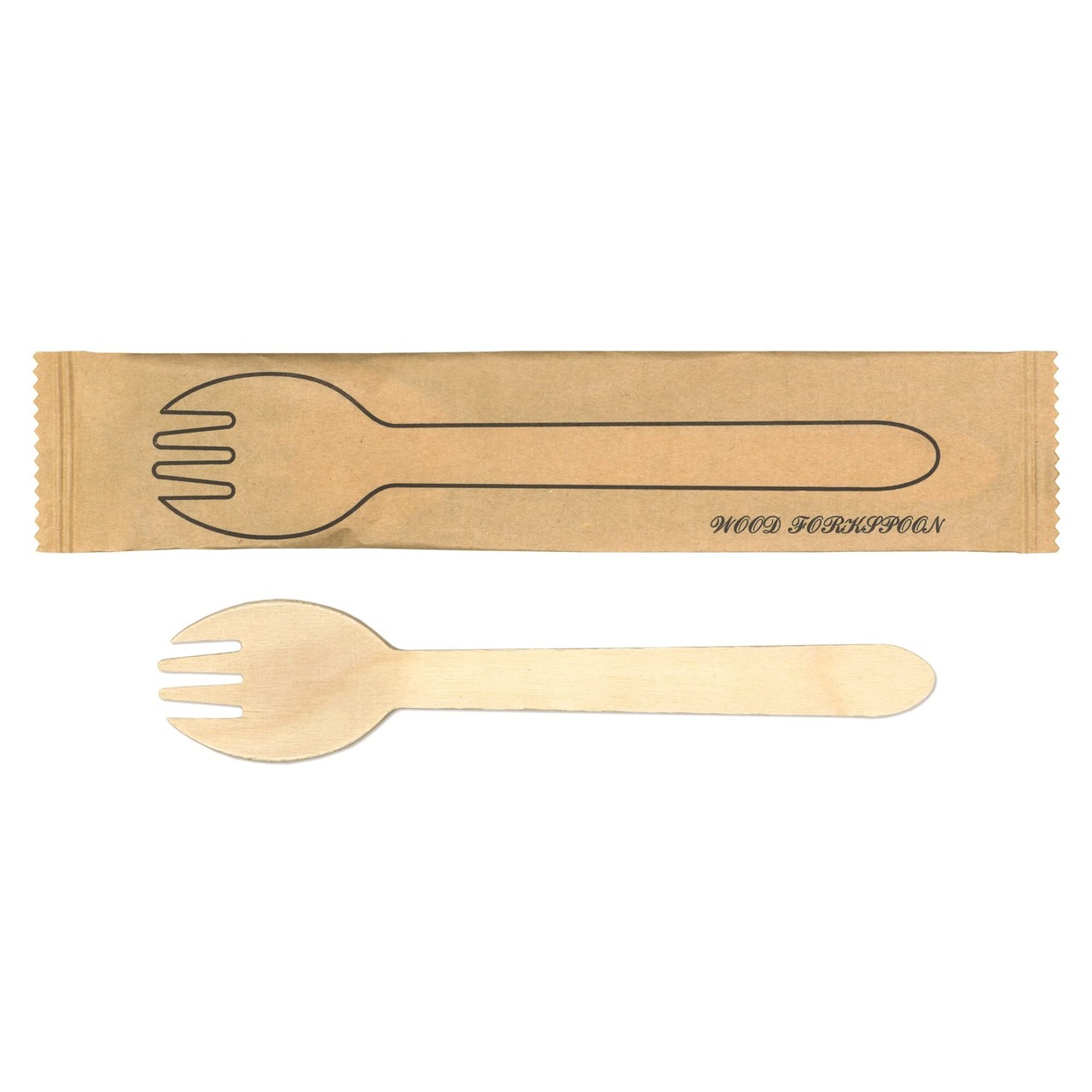 九州紙工 ウッドカトラリー クラフト完封 ウッドフォークスプーン100本 紙包装 木製 個包装 使い捨て エコ カフェ アウトドア おもてなし WSF-004N