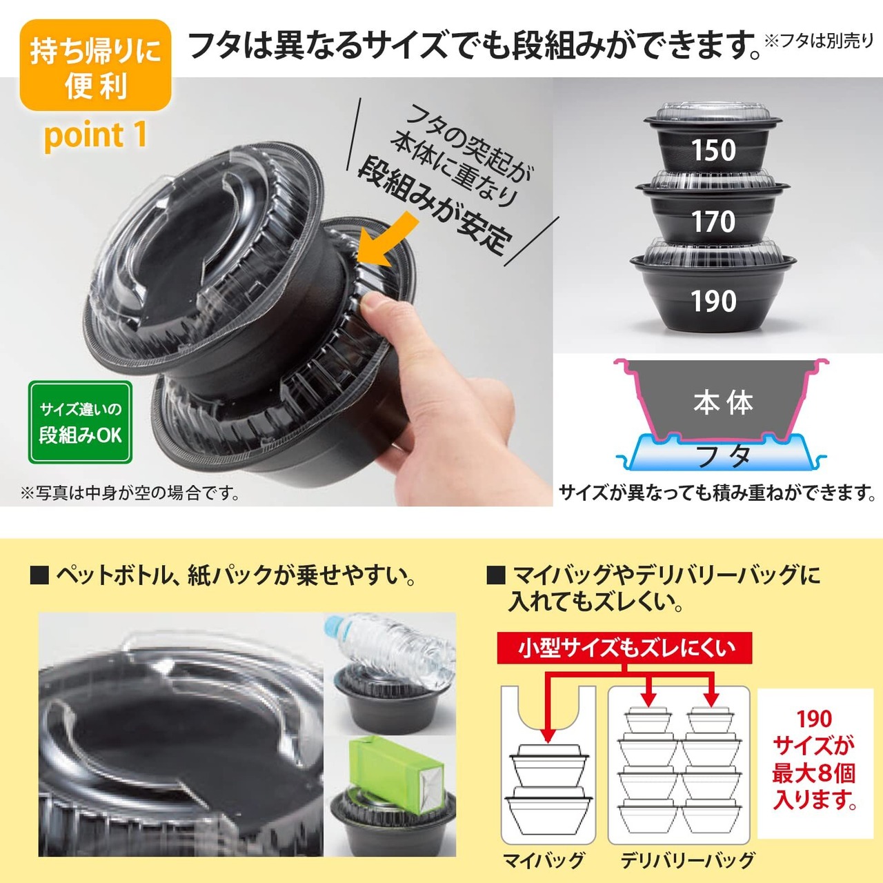 リスパック(Risupack) 使い捨て 容器 テイク丼 150 本体 黒 50個入 日本製 RHDT741