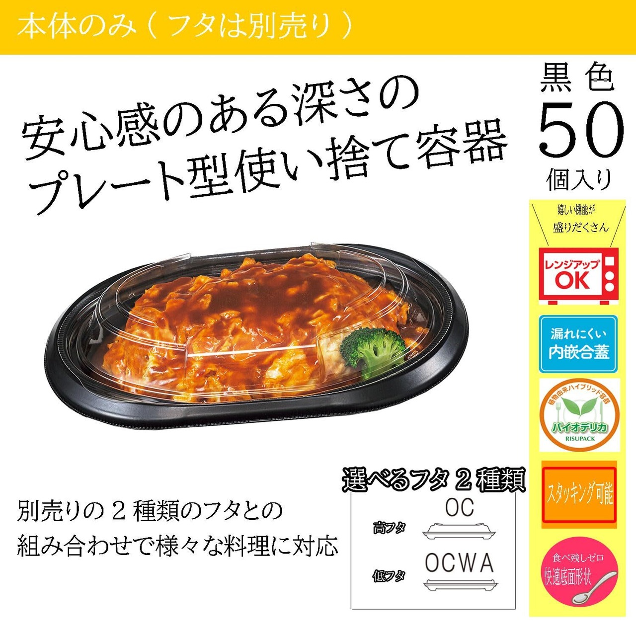 リスパック(Risupack) 使い捨て容器 バイオデリカ サラエル D21 B 黒 本体 50枚入り 日本製 内嵌合蓋 レンジ対応 スタッキング可能 汁漏れ防止 シンプル テイクアウト デリバリー フードパック 惣菜 業務用 RHBL101