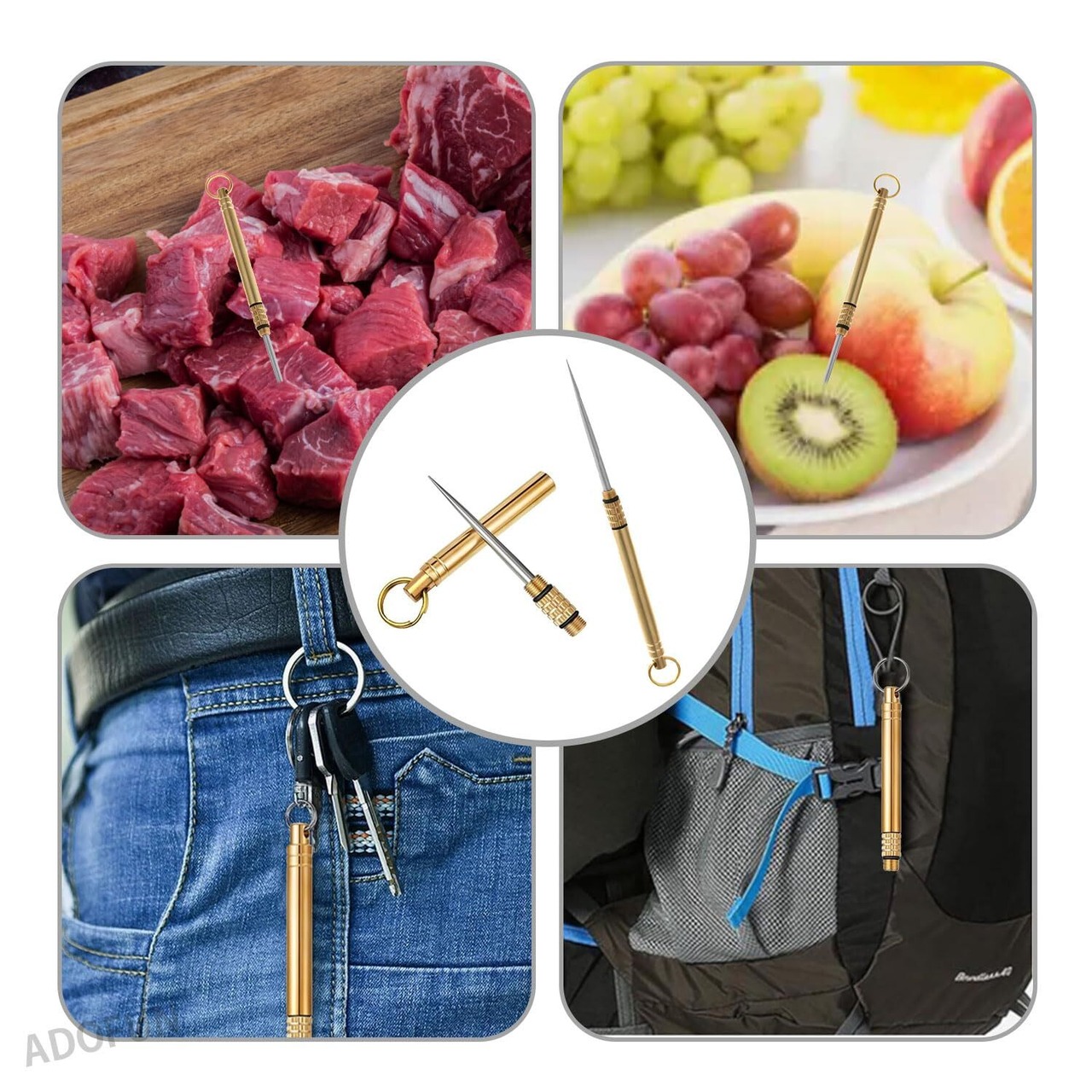 【在庫セール】多機能 爪楊枝 2個セット キャンプ 合金 チタン製 爪楊枝 フロスピック スティック キーホルダー キーホルダー ポータブル 携帯用 軽量 防水 ピクニック用品