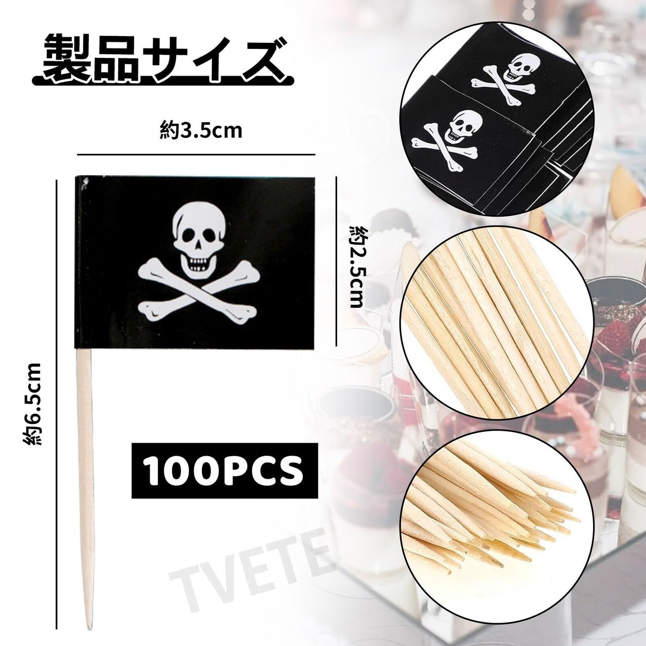 【在庫処分】TVETE 爪楊枝 フラッグ 海賊 海賊 フラッグ つま楊枝 【100個セット】 長さ約6.5cm 装飾用 矩形 お子様ランチ 旗 つまようじ パイロット フラグ スカルパターン 海賊旗 飾り物 海賊旗パターン 海賊テーマ 海賊 テーマパーティー