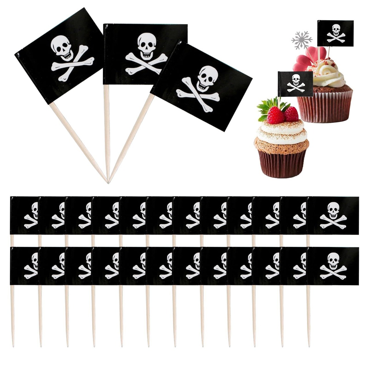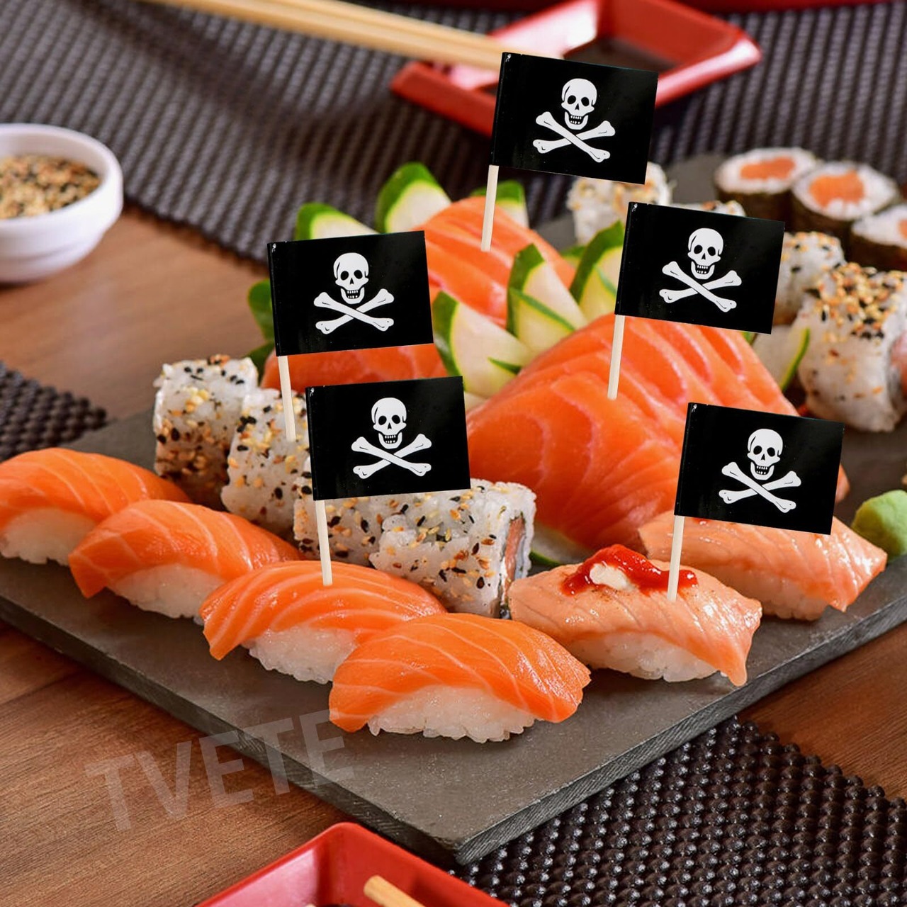 TVETE 爪楊枝 フラッグ 海賊 海賊 フラッグ つま楊枝 【100個セット】 長さ約6.5cm 装飾用 矩形 お子様ランチ 旗 つまようじ パイロット フラグ スカルパターン 海賊旗 飾り物 海賊旗パターン 海賊テーマ 海賊 テーマパーティー