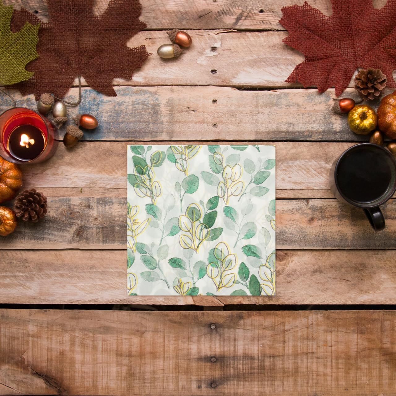 一次木材パルプで作られたこれらのナプキンは柔らかく、吸収性があり、こぼれや汚れを効果的に拭き取ります。水彩のユーカリの葉の模様が描かれており、新鮮で絶妙な、毎日や春の休日のパーティーに最適なアイテムがいっぱいです。