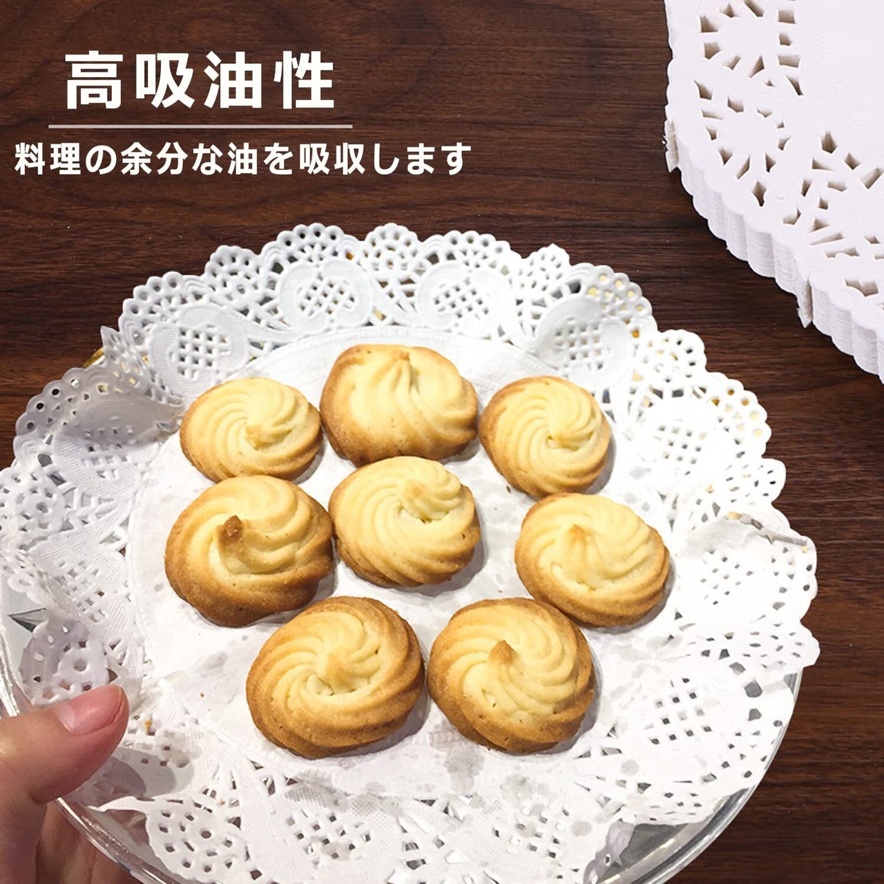 【Charming Decoration】天ぷら敷紙 レースペーパー 丸型 無蛍光食品紙 敷き紙 使い捨て 150枚 16.5cm ホワイト ラッピング コースター 飾りペーパー 吸油紙 耐油紙 包装用品 キッチン用品 素材紙 背景紙(16.5cm(150枚))