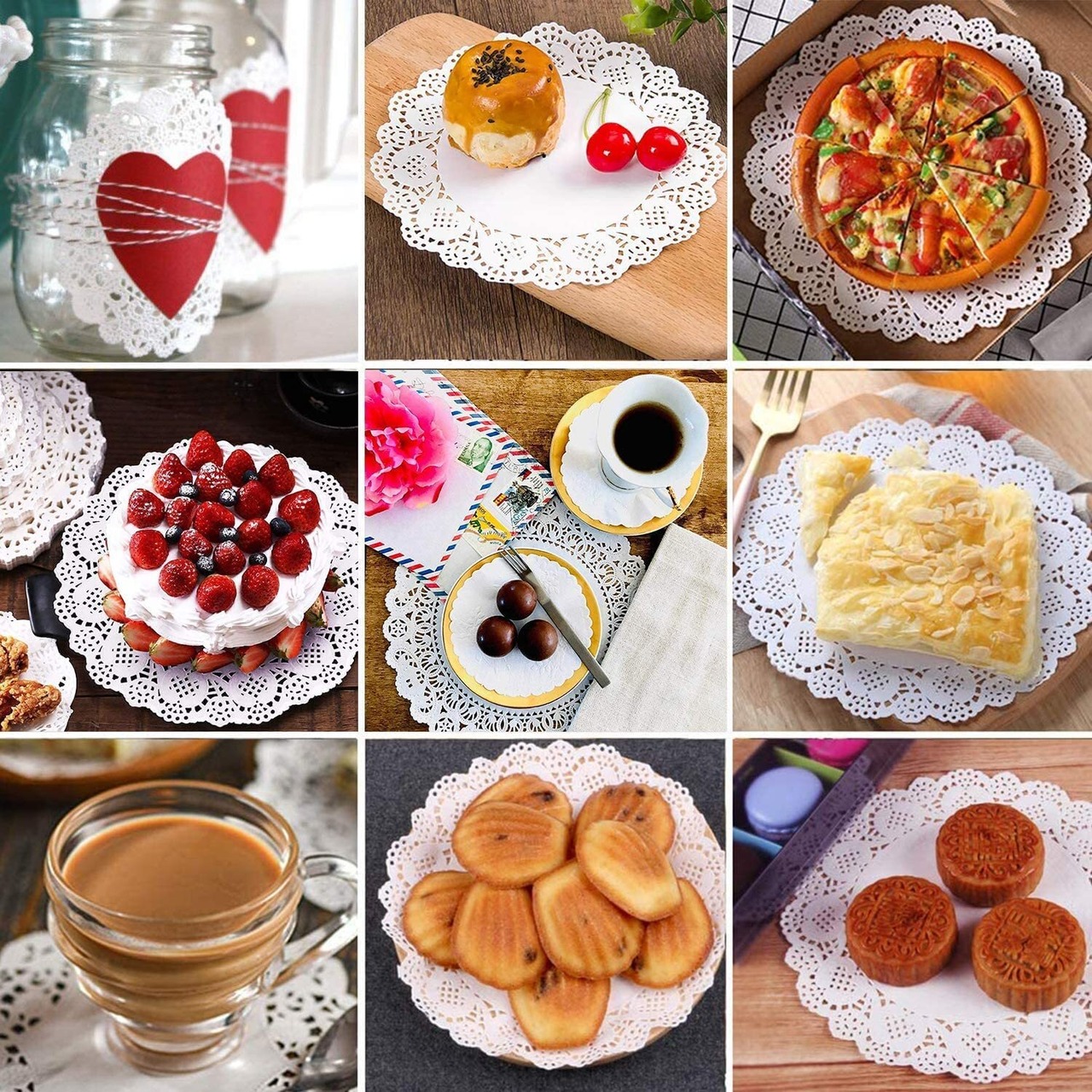 【サイズ情報】レースペーパー円型(直径約):11cm、16.5cm、19cm、21.5cm、24cm。楕円:23cm*16.5cm。長方形:16cm*23cm。正方形(辺長):15cm、20cm。梱包枚数:150枚入れ。