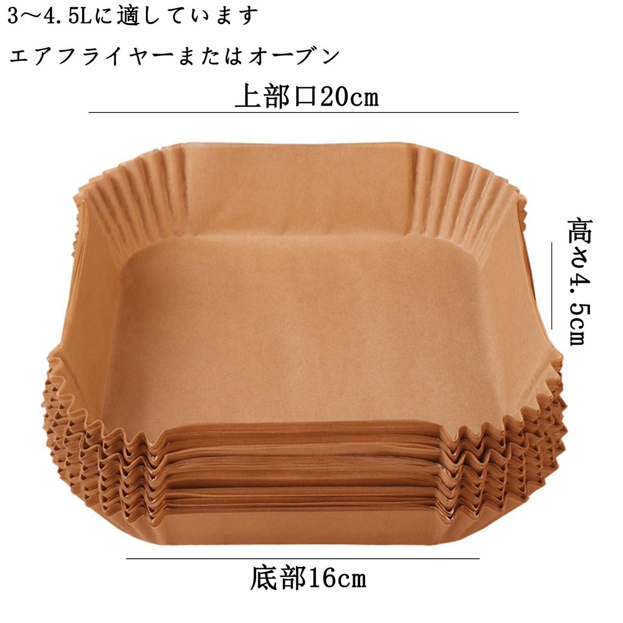 エアフライヤー用紙 100個 使い捨て 天ぷら敷紙 使い捨てエアフライヤー油こし紙 耐熱性 耐油紙 耐水性 エアフライヤー 紙 電子レンジ フライパン フライパン オーブン (16cm*4.5cm 四角)