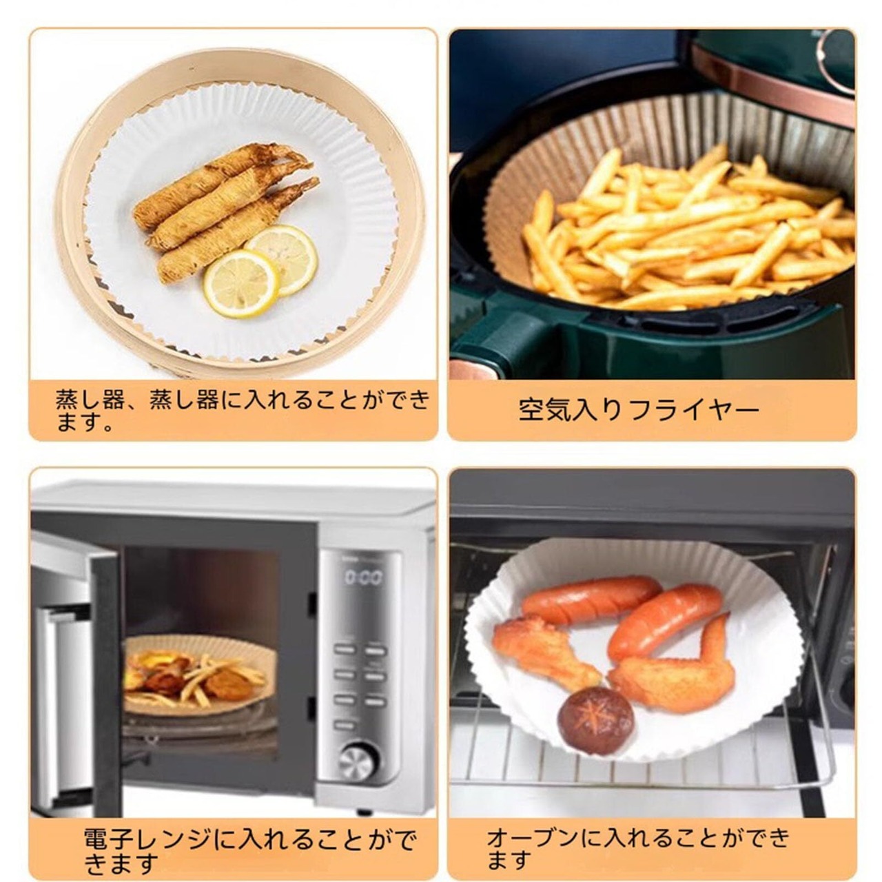 内径16cm、20cmのエアフライヤーペーパーは、エアフライヤーだけでなく、電子レンジやオーブン、スチーマーなど、さまざまな調理器具に使用できる汎用性の高いアイテムです。