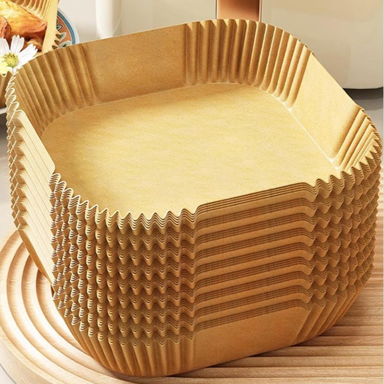 エアフライヤーペーパーは通常の紙と異なり、防滴性、耐油性、食品の油分を逃さない、耐熱性に優れているため、幅広い用途:エアフライヤー、電子レンジ、オーブン、蒸し器、調理器具などに適しています。紙の裏地は、ベーキング、グリル、揚げ物、または食品の提供に使用できます。ホームベーキング、キャンプ、バーベキュー、サマーパーティーなどに適しています。軽くて実用的です。