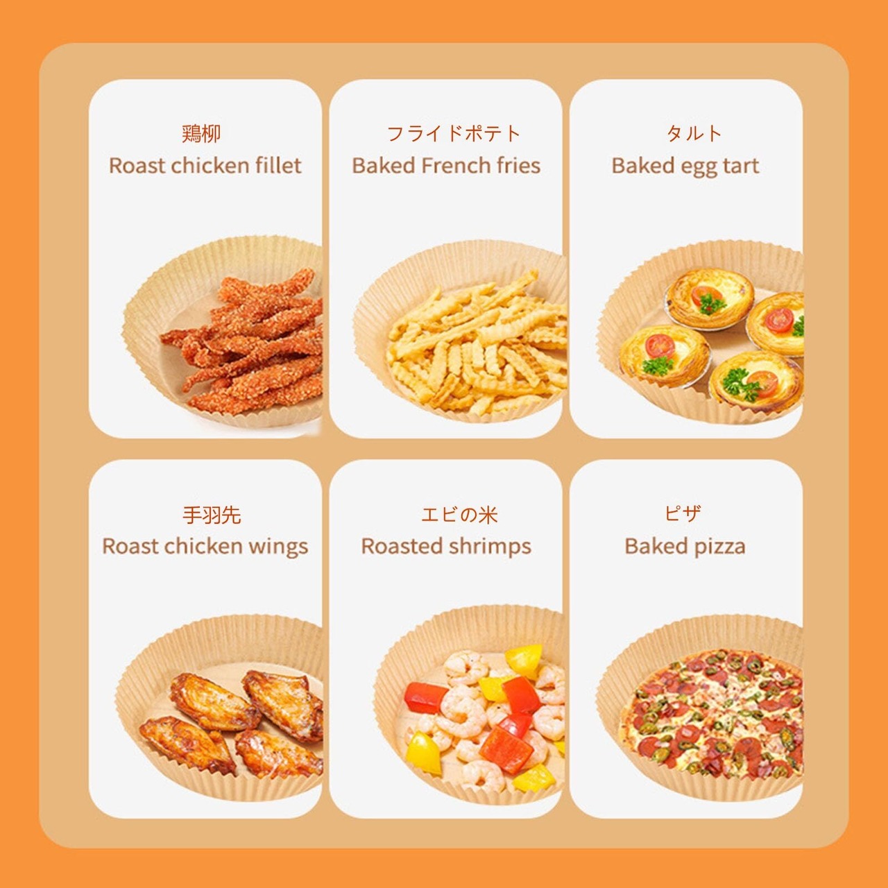 サイズ:内径16cm、20cm,高さ4.5cm (100枚セット) 素材:食品グレードのシリコーンオイルペーパーを使用しており、防水性、耐油性、非粘着性を備えています。 エアフライヤー紙は、最高220℃,20分(200℃を推奨)の温度に耐えることができます