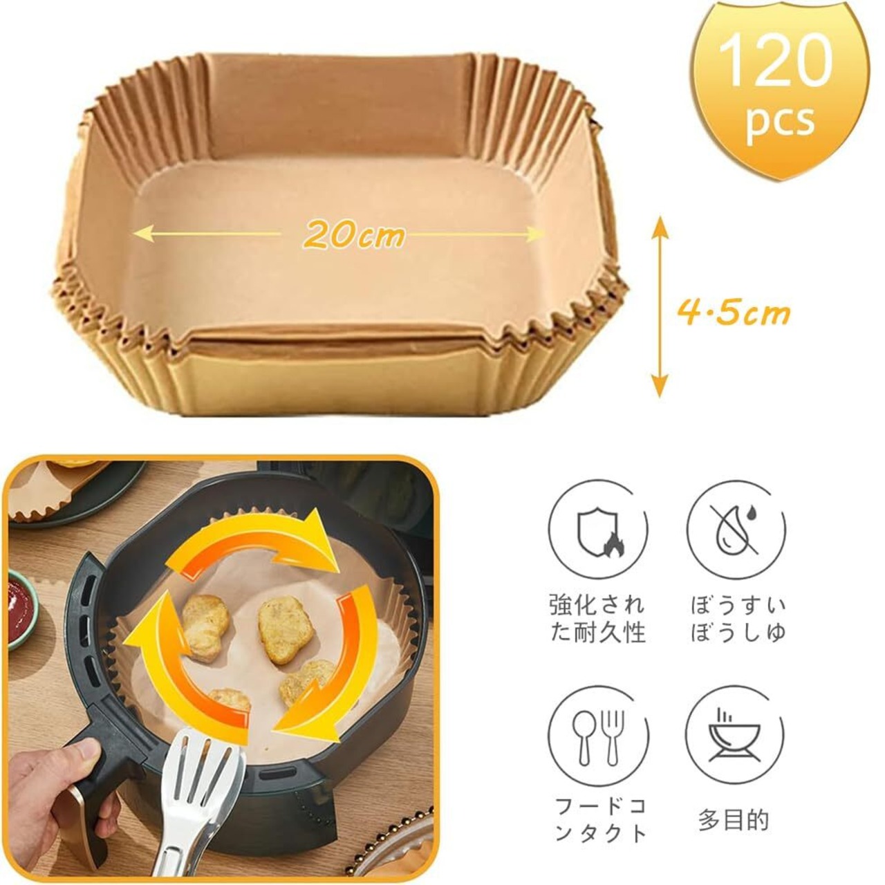 Selinear エアフライヤー用紙 120枚セットノンフライヤー 使い捨て紙 耐熱 耐油 耐水性 天ぷら敷紙 油紙 クッキングシートシリコーンオイル紙 電子レンジ オーブン 蒸し器 対応 四角形 (20cm*4.5cm)
