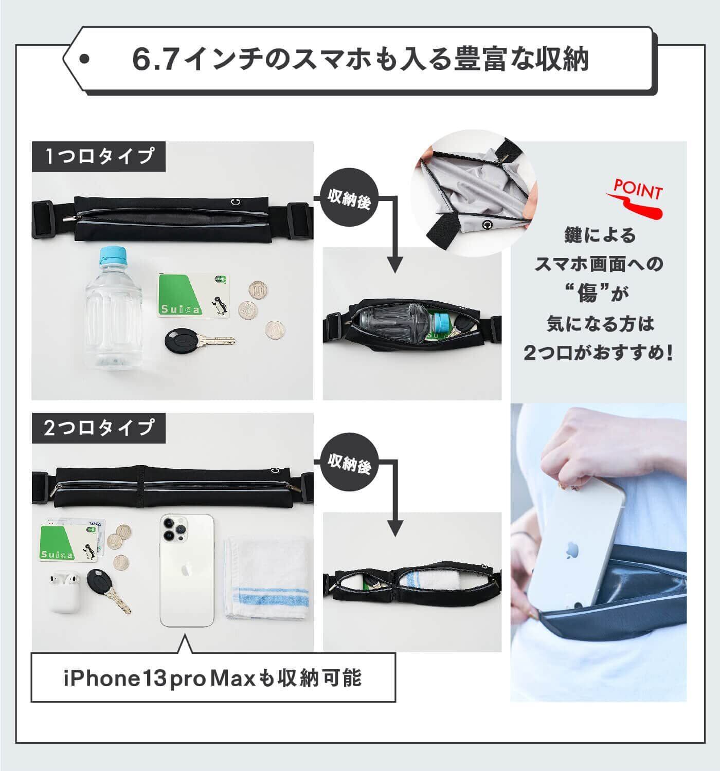 6.5インチのスマホも入る豊富な収納