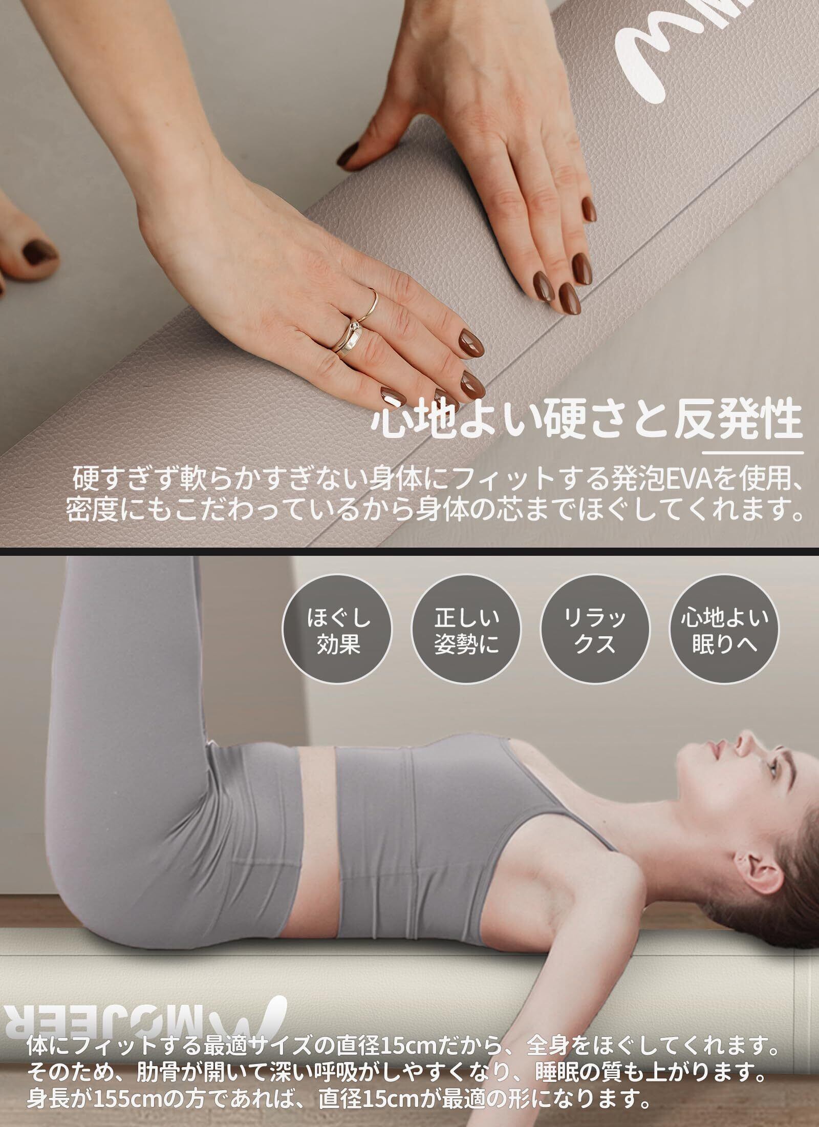 【部屋の雰囲気を邪魔しない】主張しすぎないナチュラルカラーだから、どんな部屋にも馴染みます。リビングに置いておけるため、いつでも手軽にストレッチができます。直径は15cmで、コンパクトで場所を取らないです。リビングに置いておけるため、いつでも手軽にストレッチができます。仕事先、デスクの下で密かにコロコロいかがでしょうか。
