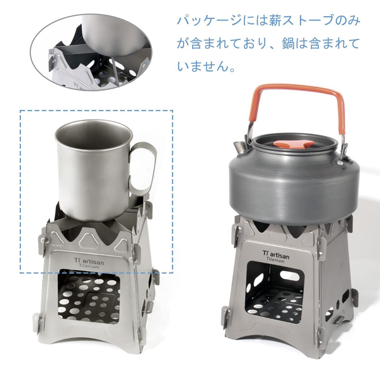 Ti artisanのチタン薪ストーブは、質の高い素材と機能性を兼ね備えた一品です。この商品を使って、煮たり焼いたりする楽しさをぜひ体験してみてください!新しいアウトドア料理の冒険に向けて、今すぐお手元にどうぞ!