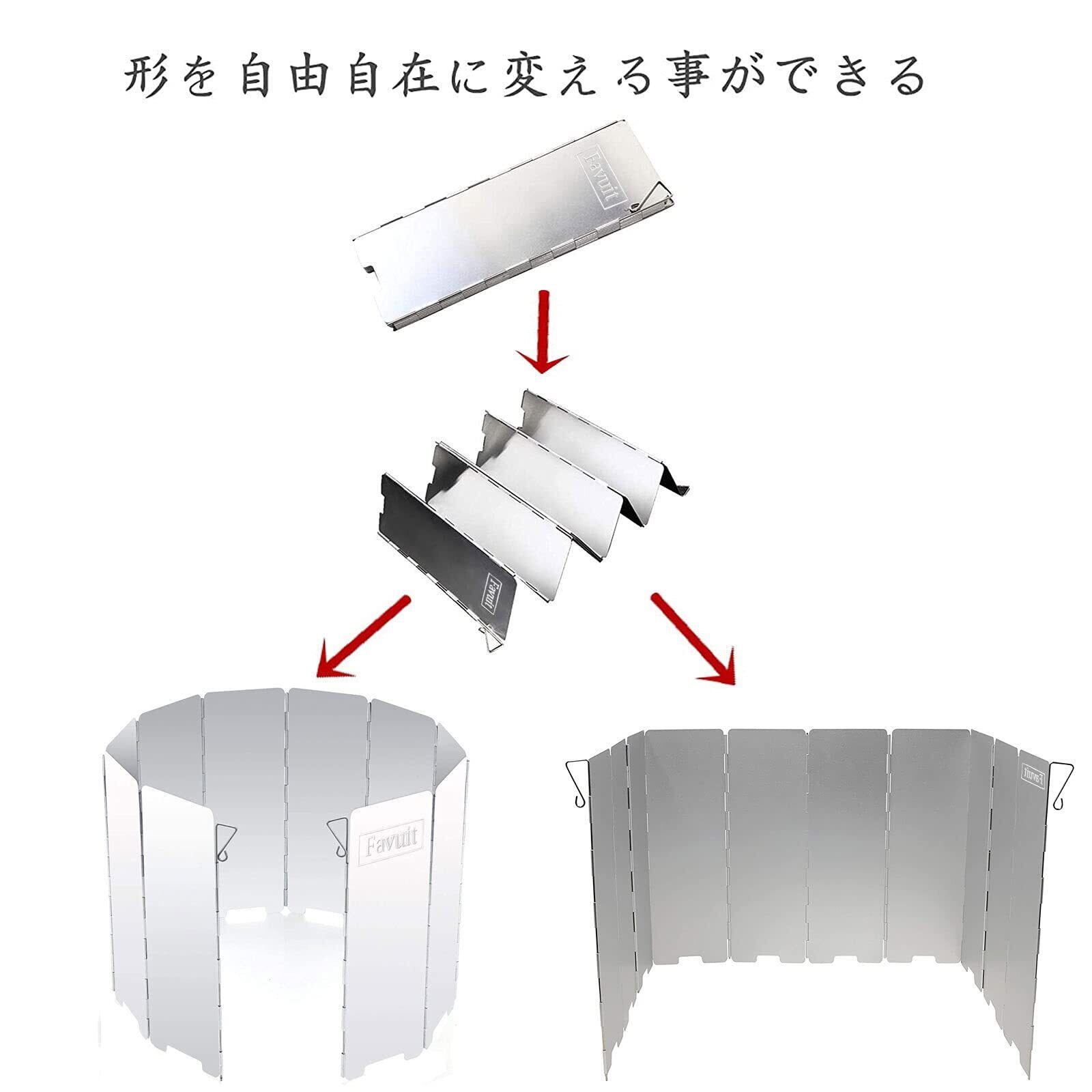 【簡単でいろいろ使える!】10枚のパネルなので、幅広い範囲を風から守ってくれます。コンロやストーブに合わせて自在にセッティングできます。風の強い日や気温の低い時にも火力を補助します。アウトドアで活躍するコンロ用の風除け板(ウインドスクリーン)です。登山、キャンプ、ピクニック、バーベキューなど様々なアウトドアシーンで大活躍します!炊飯時や、コーヒータイムにも大活躍です。強い横風から炎を守ります。コンロの熱効率up!防災?地震?非常時の装備品にも必携アイテムです。