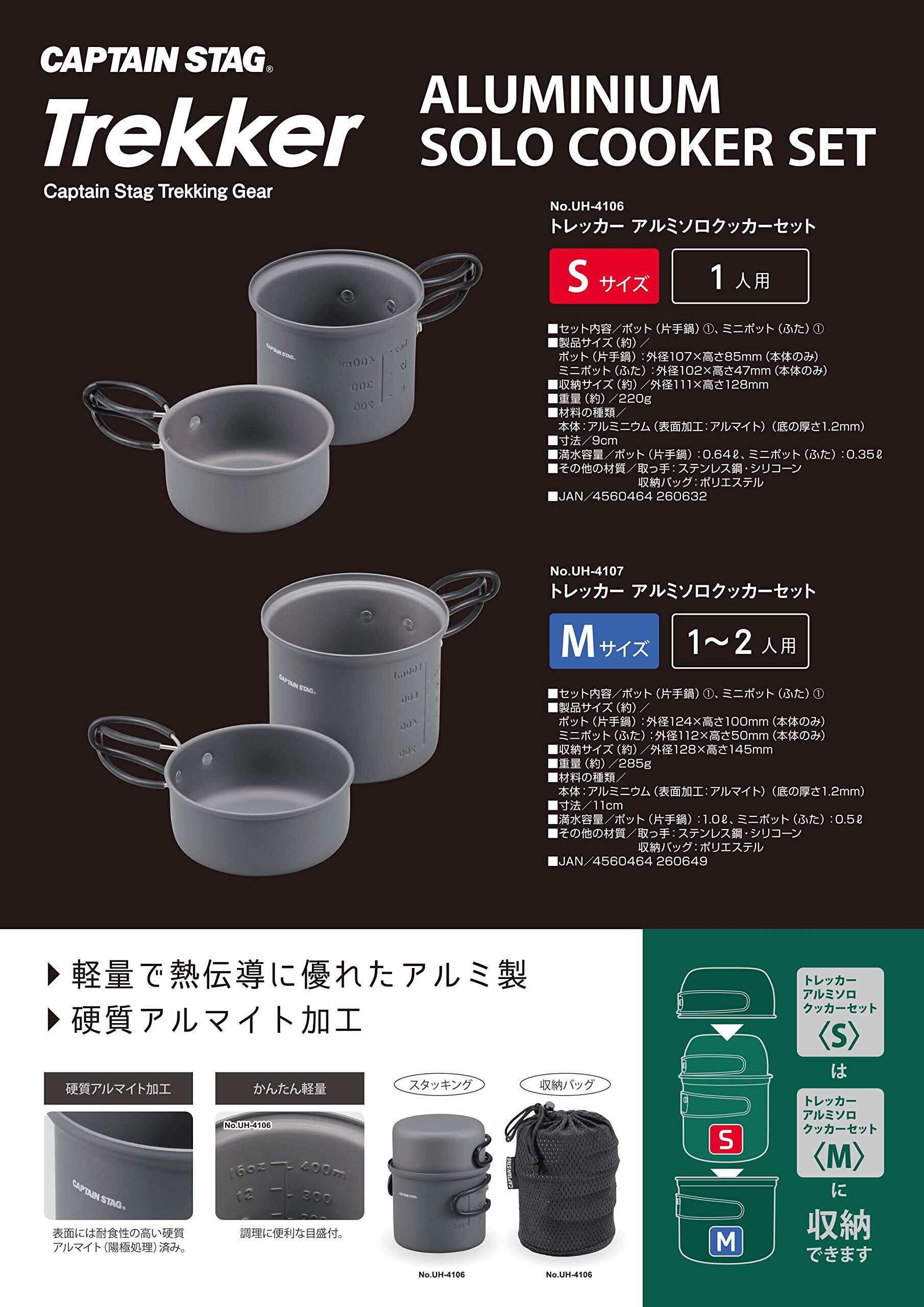 【在庫処分】キャプテンスタッグ(CAPTAIN STAG) アウトドア キャンプ クッカー クッカーセット アルミ製 硬質アルマイト加工 ソロクッカーセット 収納バッグ付き トレッカー