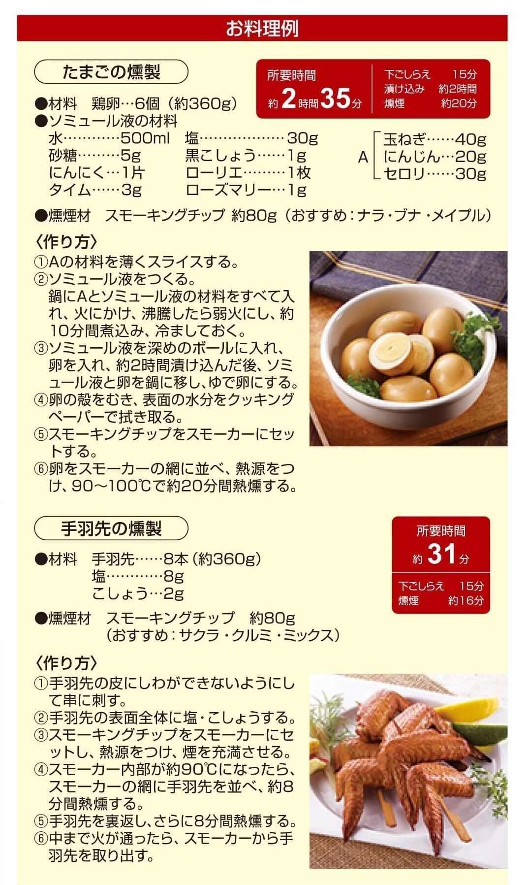 肉・チーズ・ゆでたまご等、燻製独特の美味しい風味が作れます。
