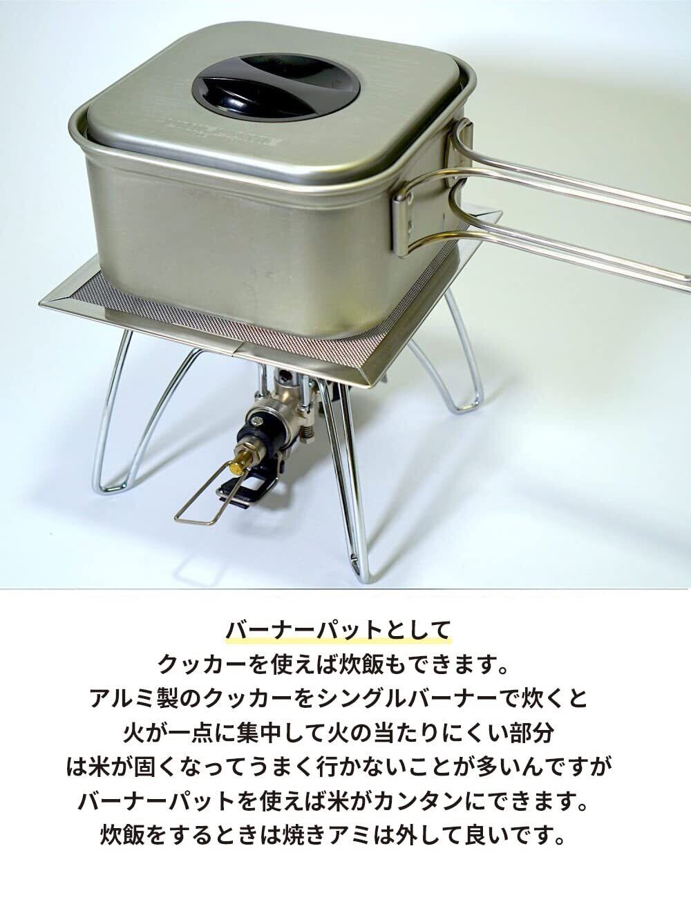 適用:調節の難しいシングルバーナーの強い炎をやわらかい熱に変えて ふっくらジューシーに焼き上げます。クッカーを置く際の安定板・滑り止めとしても。