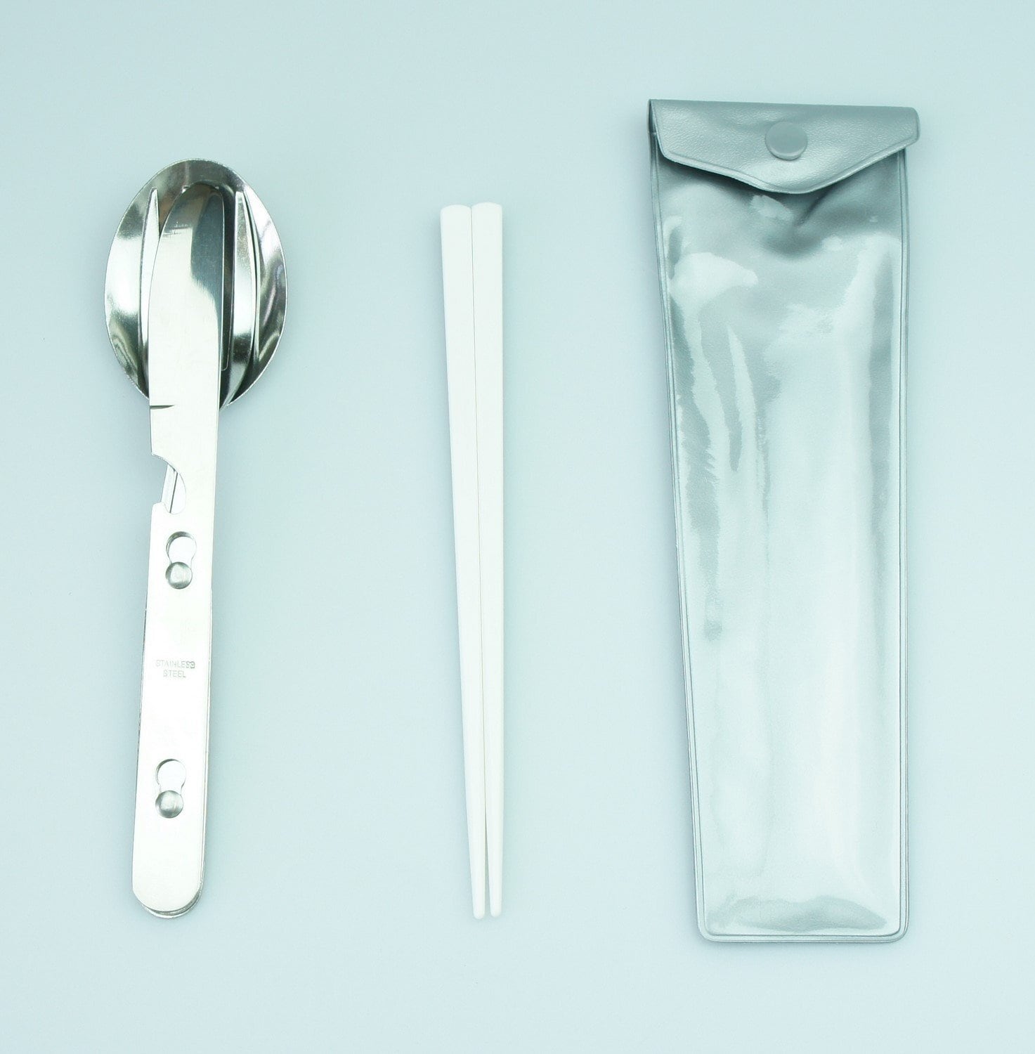トレッキングやピクニック、キャンプなどのシーンに合わせて活躍するナイフ・フォーク・スプーン・箸の4点セット。