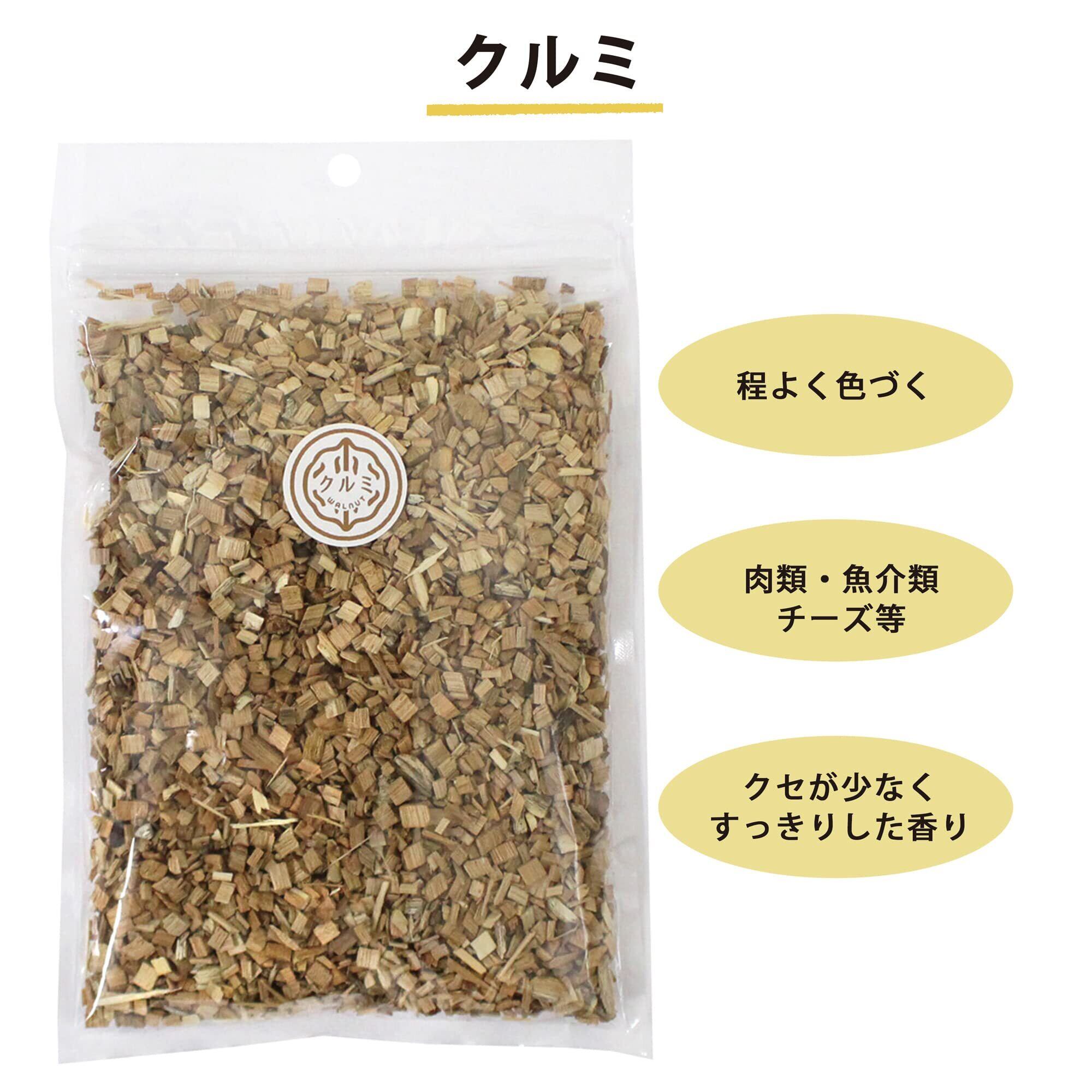 【ウッドの特長】サクラ:日本では最もポピュラー。香りが強く、クセのある食品に合わせて使う。マトンやポーク向き。 クルミ:くせがなく肉類や魚類に広く使用できます。 ヒッコリー:欧米では最もポピュラー。香りもよくオールマイティなチップ。魚類のほかに、ベーコン、ハムに使用される。 ウイスキーバレル:ウィスキーの樽を使用していますのでほのかに甘い香りがします。 淡白な素材に向いています。多少の渋みはありますが、クセのない香りで魚類に合います。色づきも良好です。
